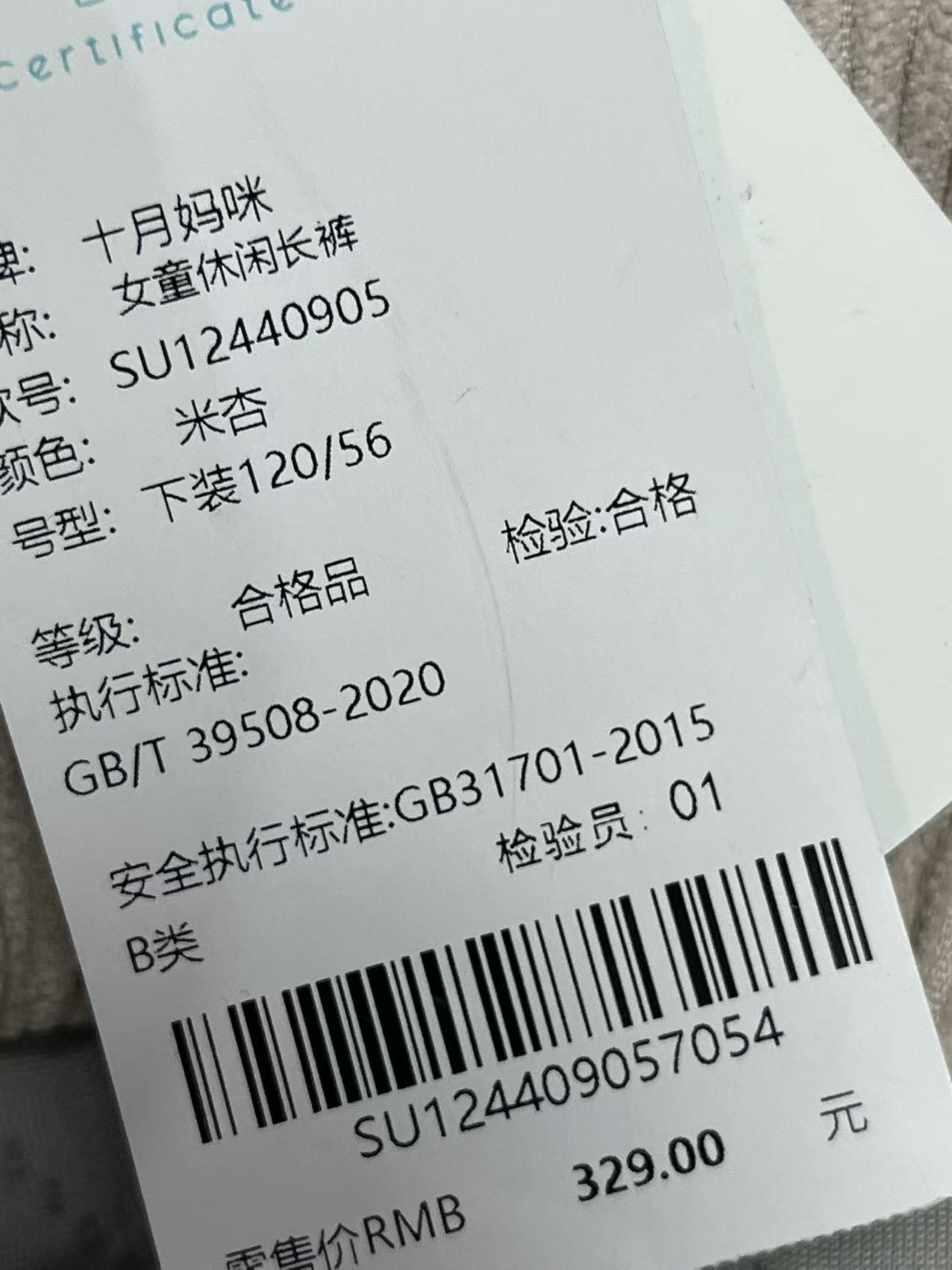 【孤品捡漏】G33十月妈咪女童夹棉厚款冬休闲长裤-喜出