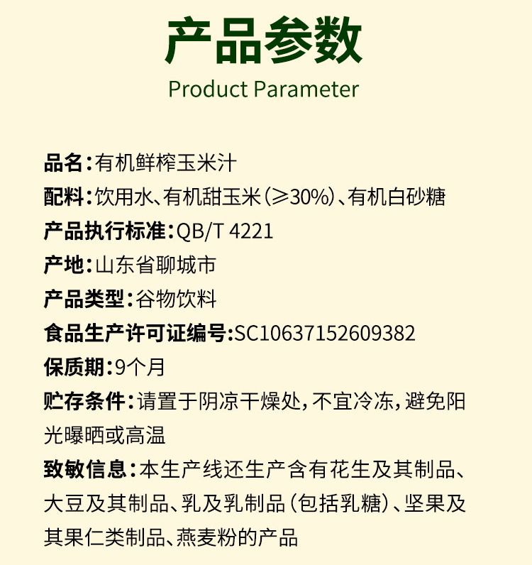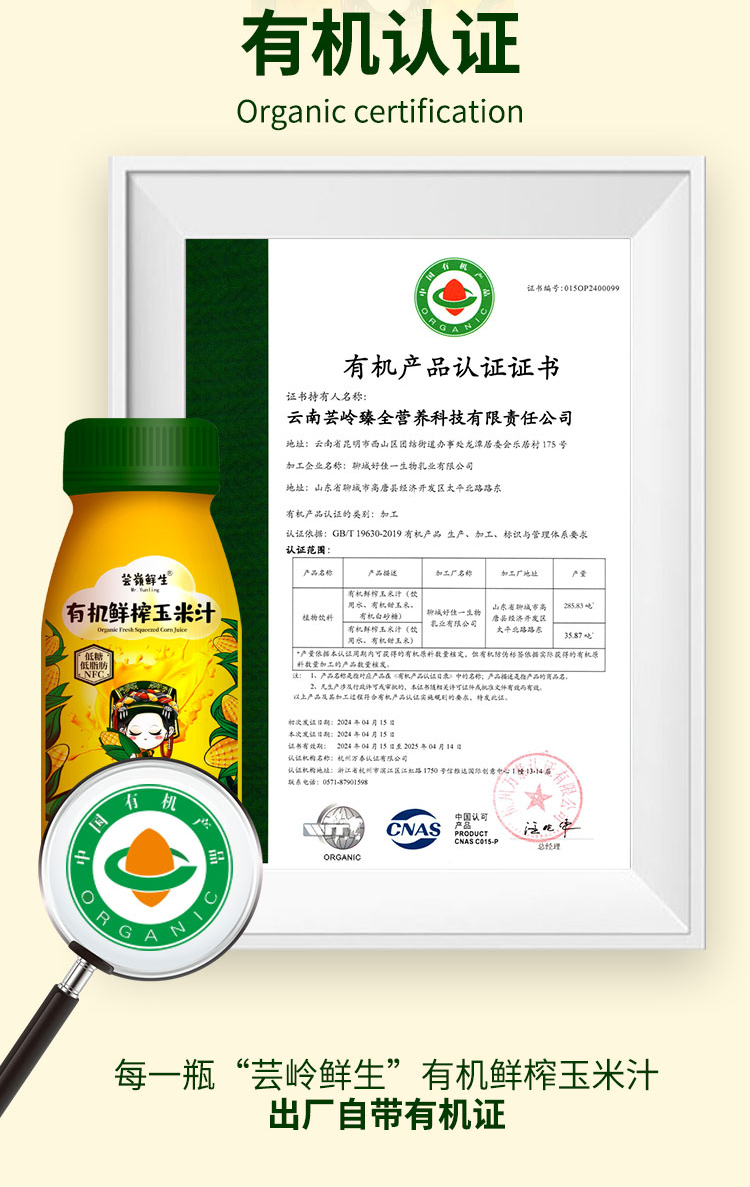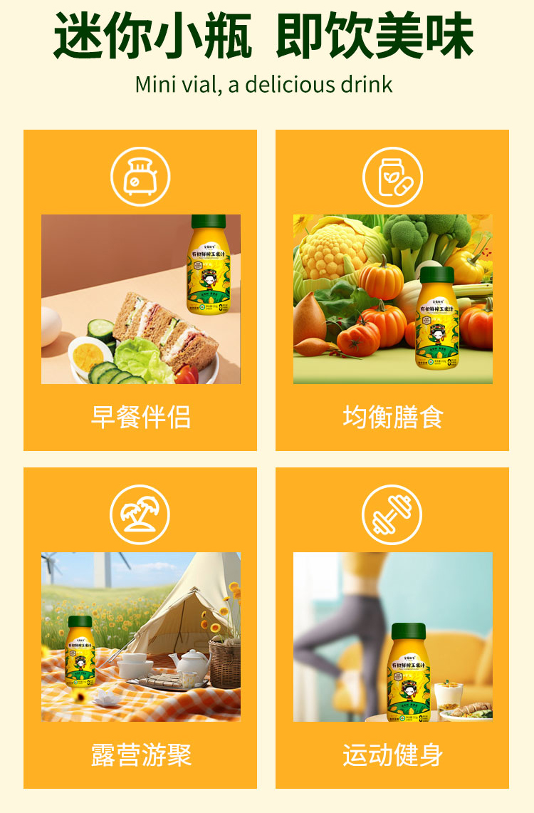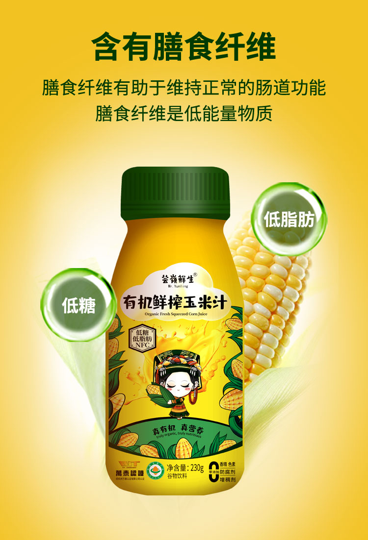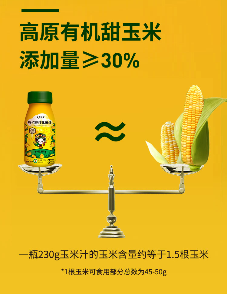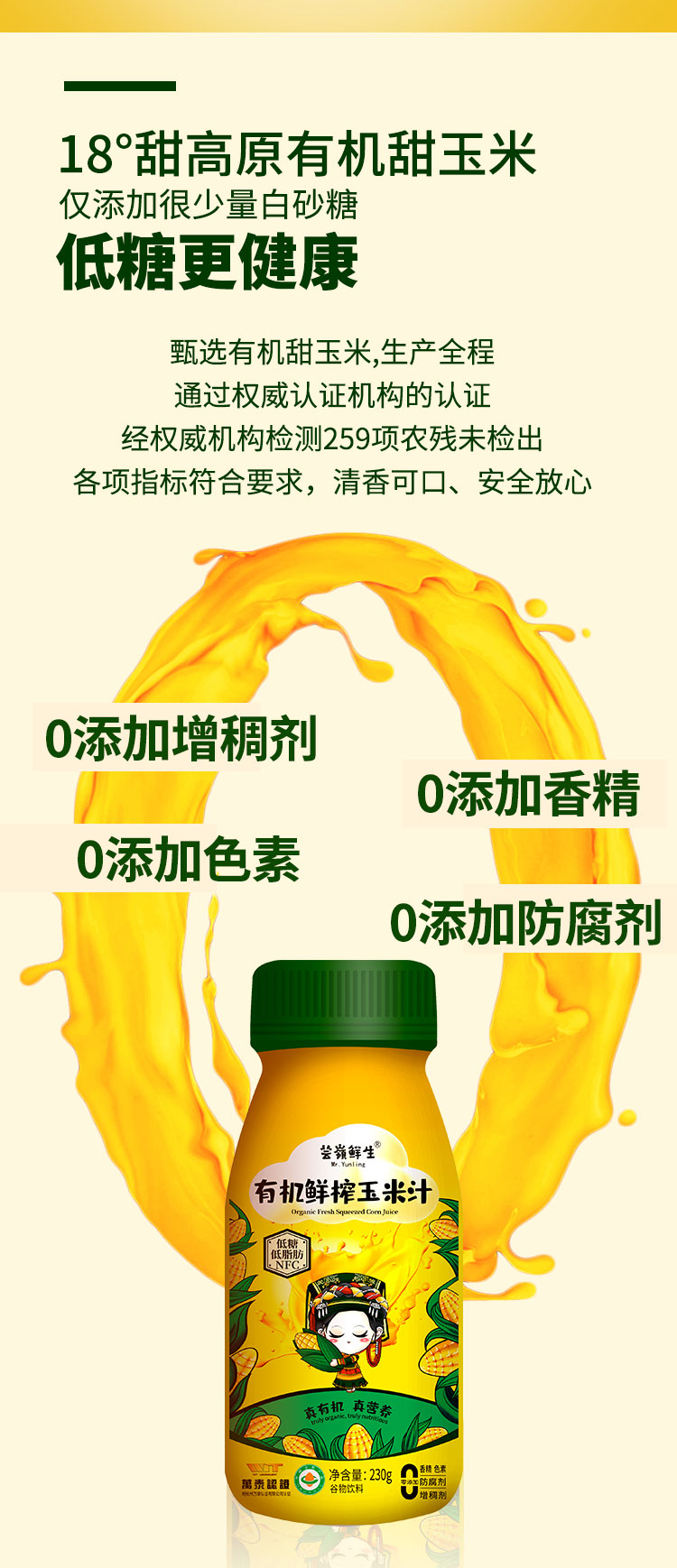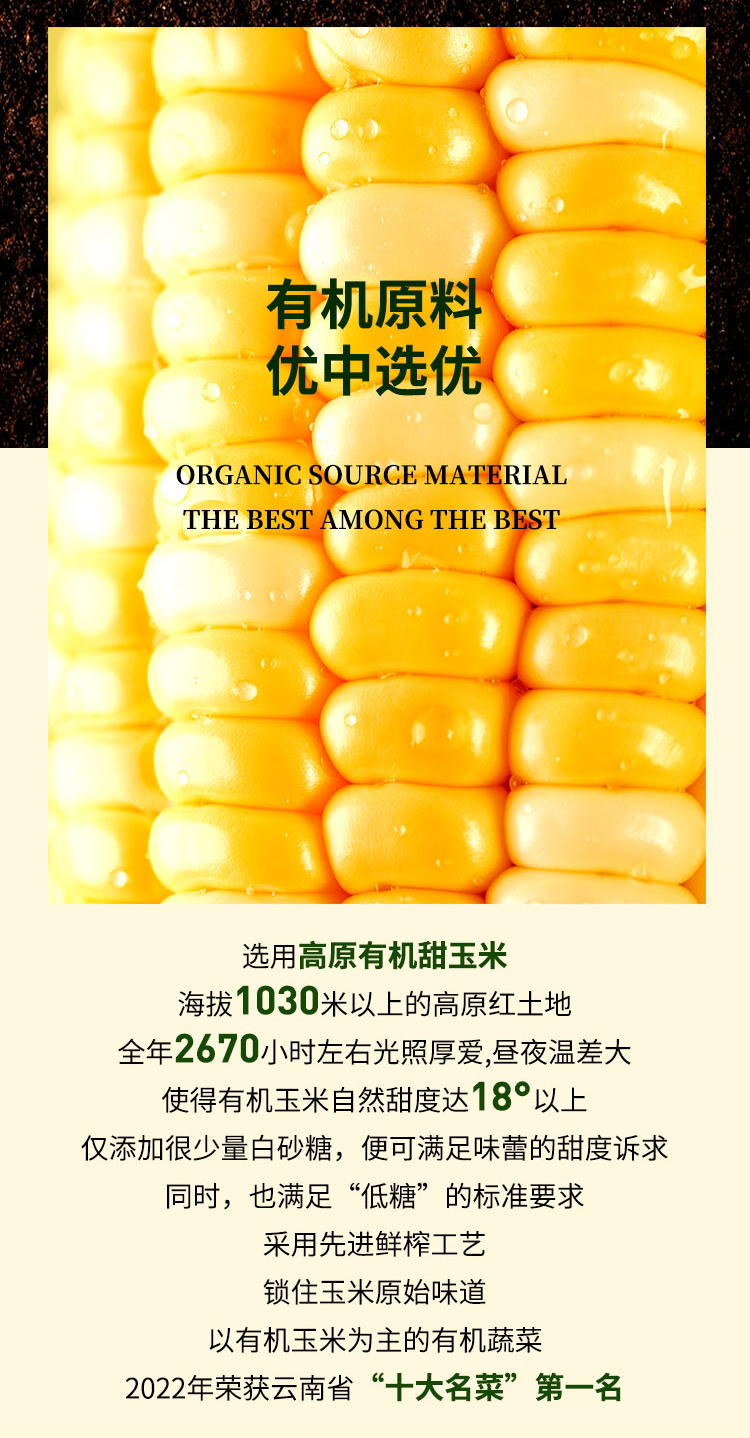 【有机鲜榨玉米汁/胡萝卜汁】甄选云南高原 有机甜玉米 NFC鲜榨工艺 保留玉米鲜营养 清新香甜 细腻顺滑 230g*10瓶/箱