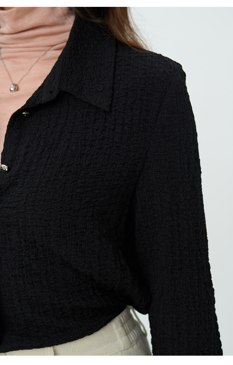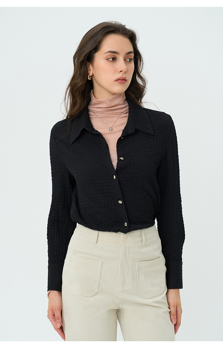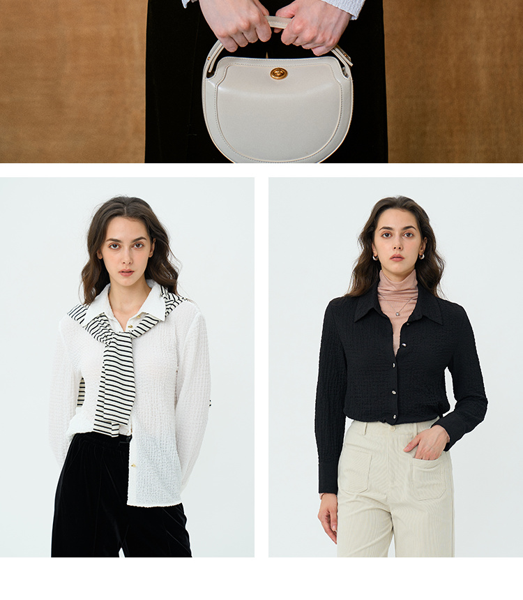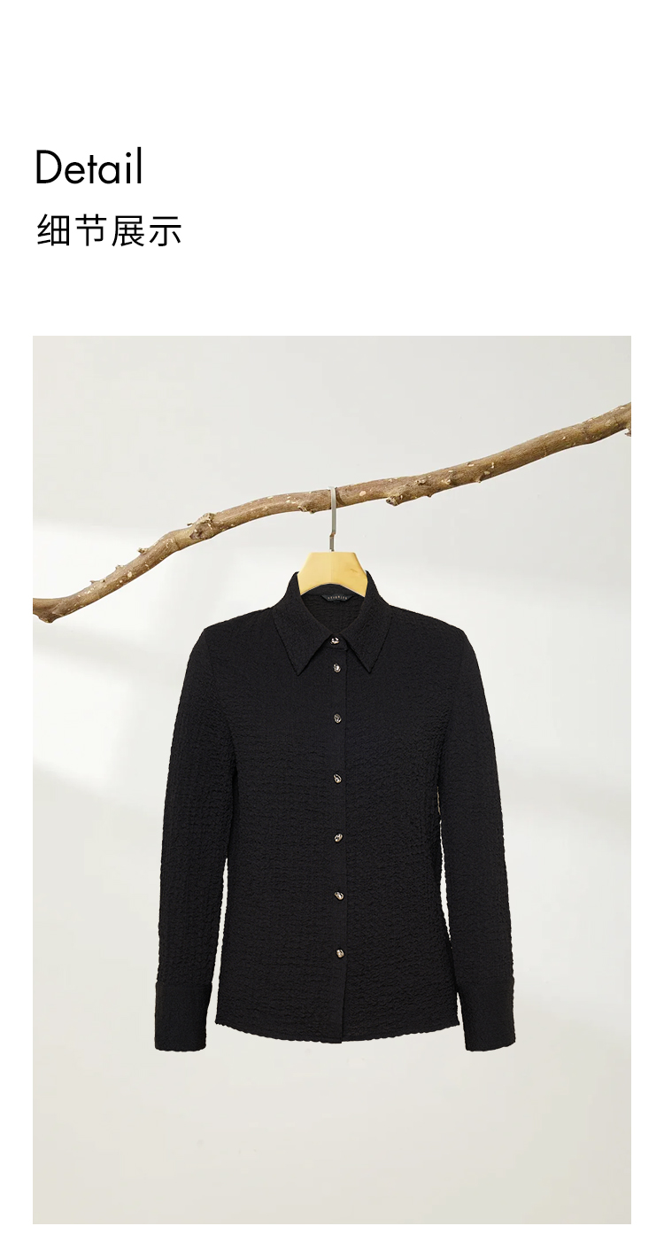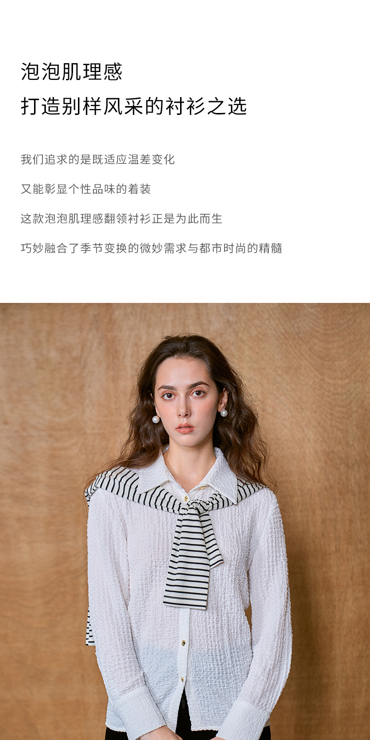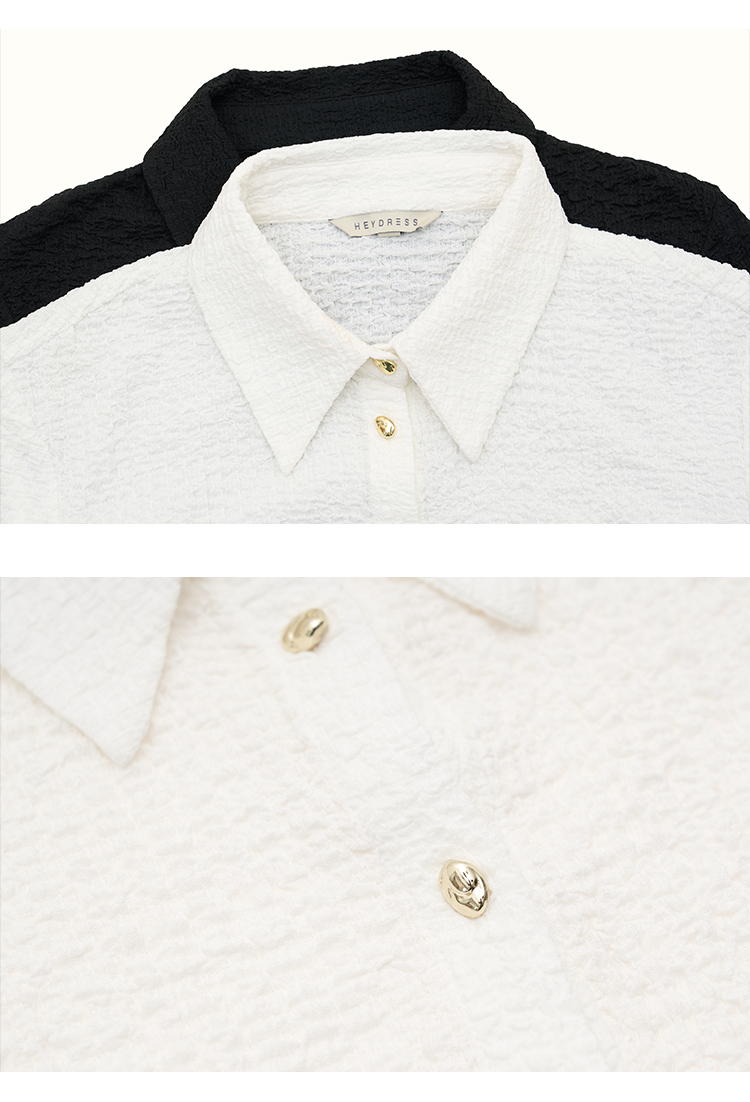 HeyDress翻领衬衫女秋季泡泡肌理感休闲宽松衬衣通勤百搭长袖上衣