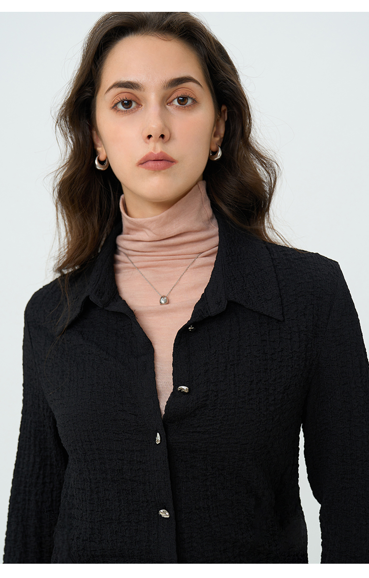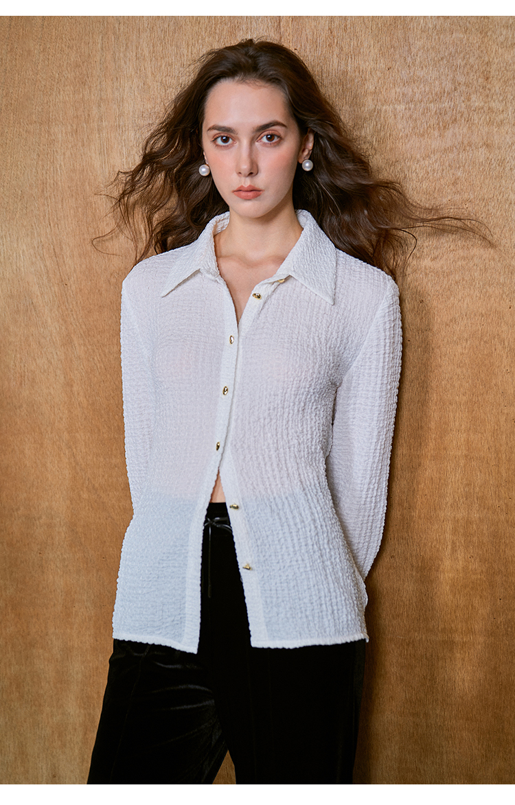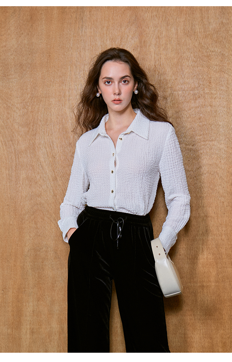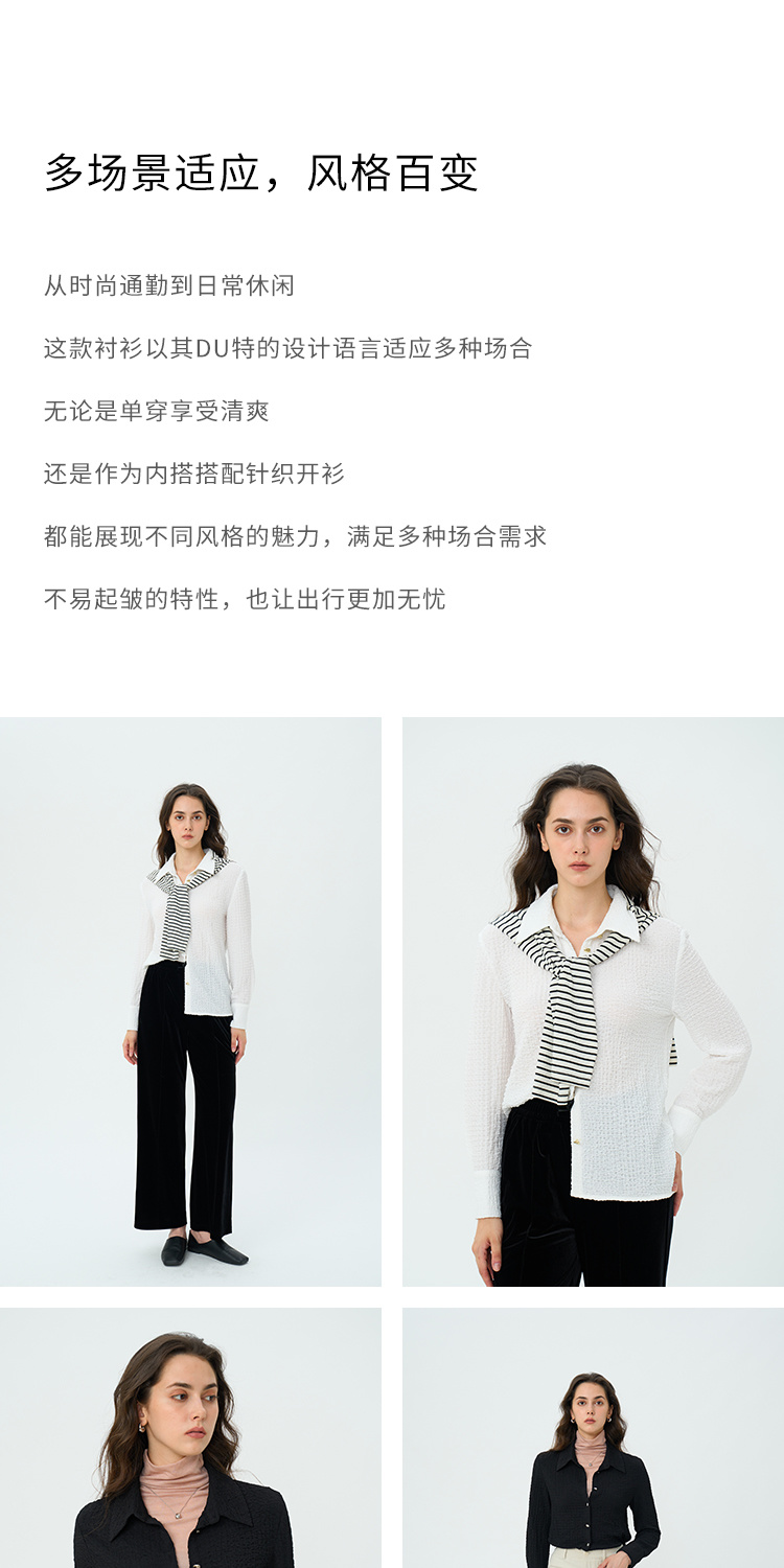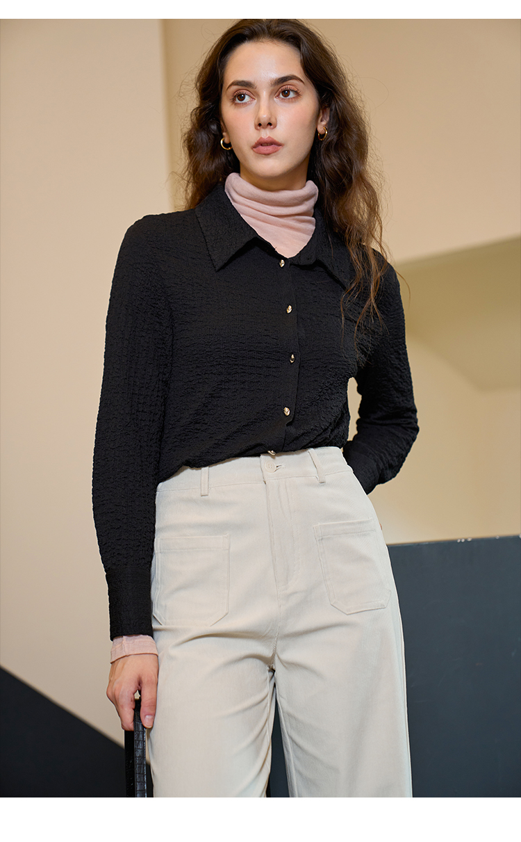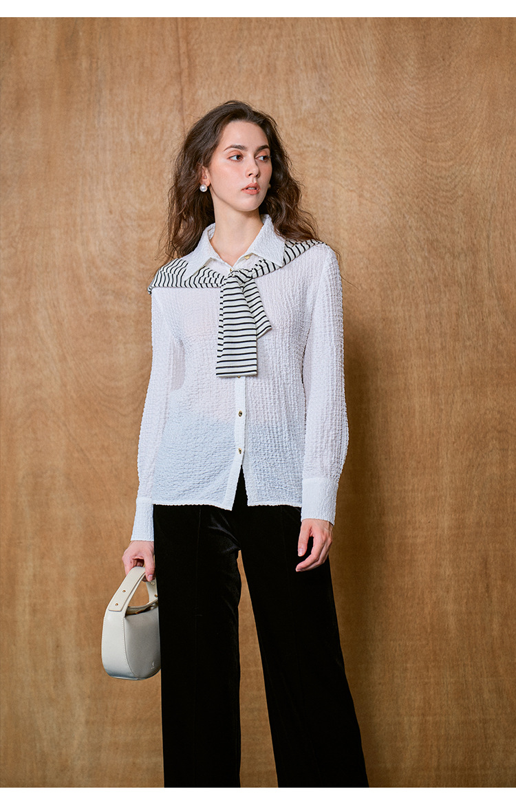 HeyDress翻领衬衫女秋季泡泡肌理感休闲宽松衬衣通勤百搭长袖上衣
