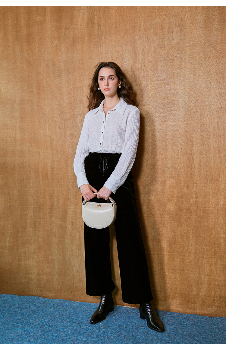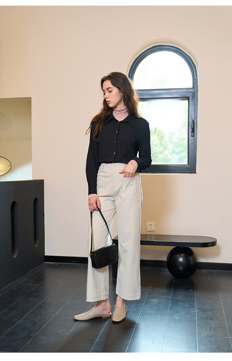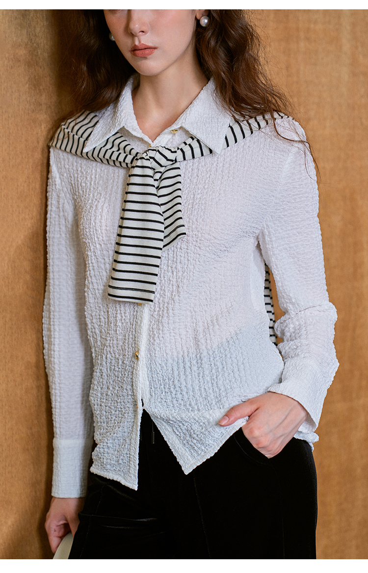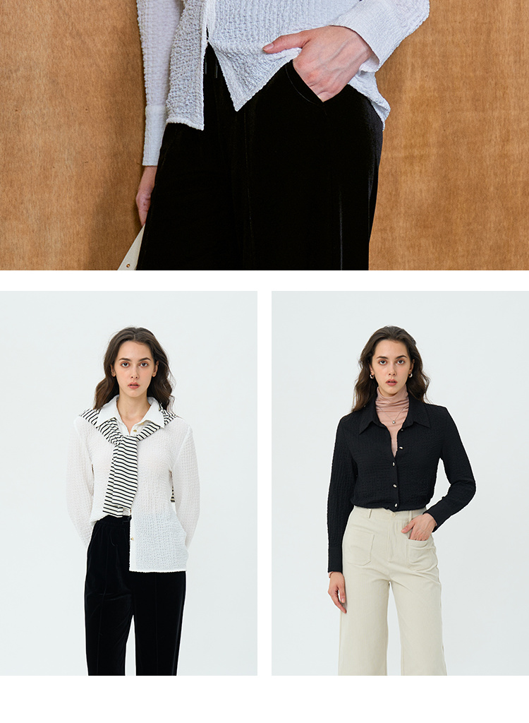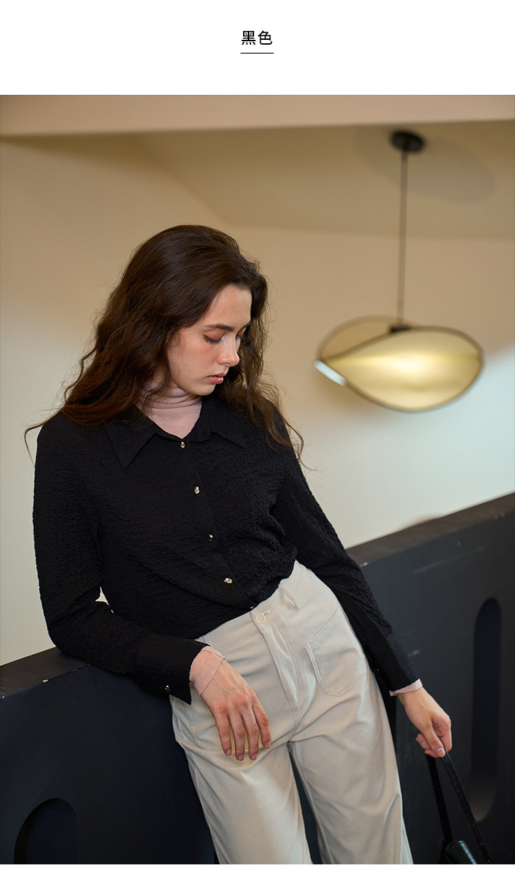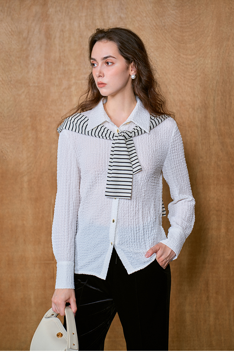 HeyDress翻领衬衫女秋季泡泡肌理感休闲宽松衬衣通勤百搭长袖上衣