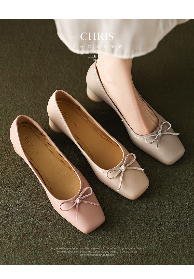 OLD m1295aa法式复古蝴蝶结中跟玛丽珍小皮鞋