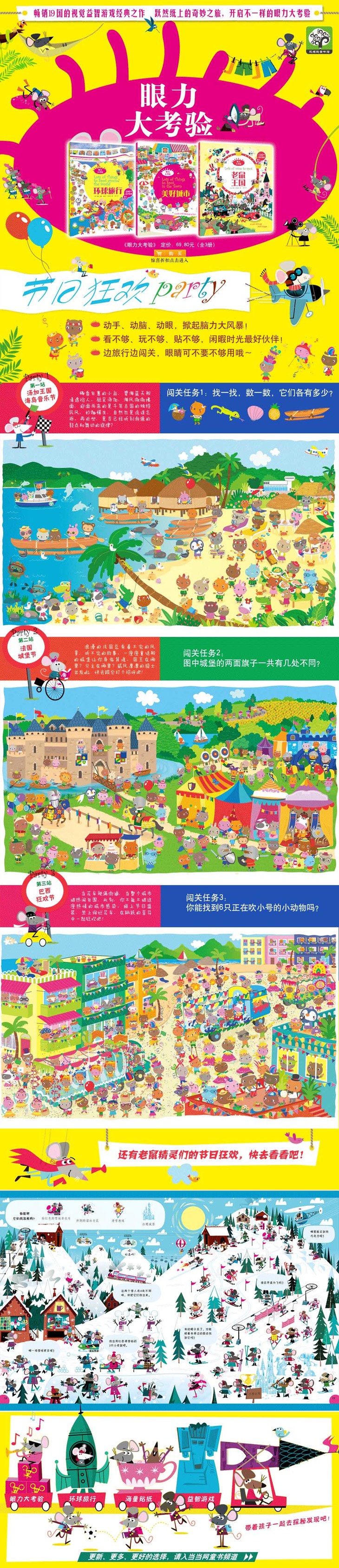这是一套充满乐趣和冒险的益智丛书,书中到处可见生动有趣的卡通形象,人物栩栩如生,场景勾画得非常有趣,处处都隐藏着一个小故事。整套书欢乐、有趣、可爱,处处渗透着有趣的知识,吸引孩子进行认知,丰富孩子的视觉体验,对孩子进行美的熏陶,训练孩子观察的细致性、思维活跃性和反应敏捷度,还可以培养孩子孩子的忍耐力和解决问题的能力。图书赠送贴纸,让孩子爱不释手。