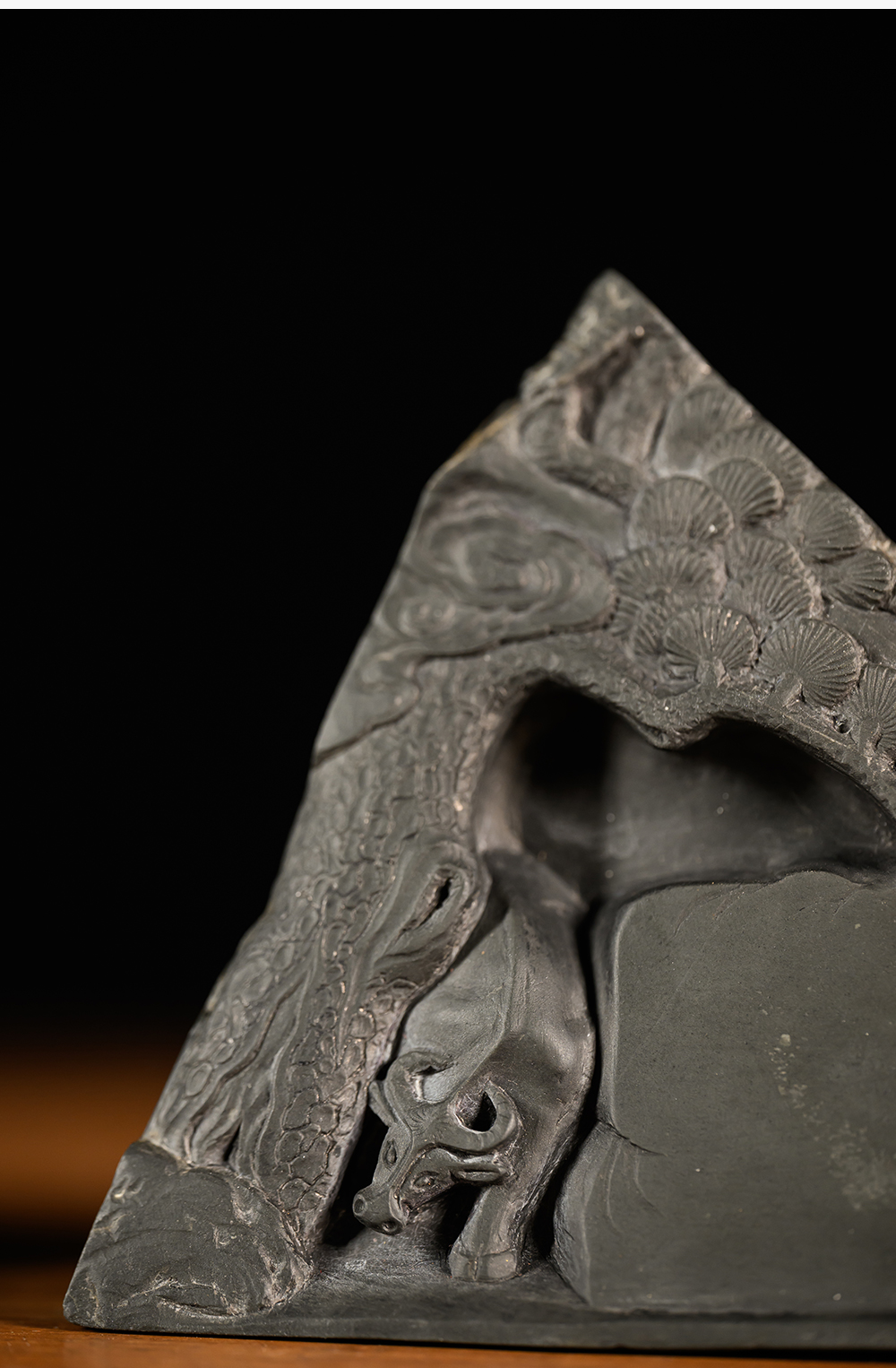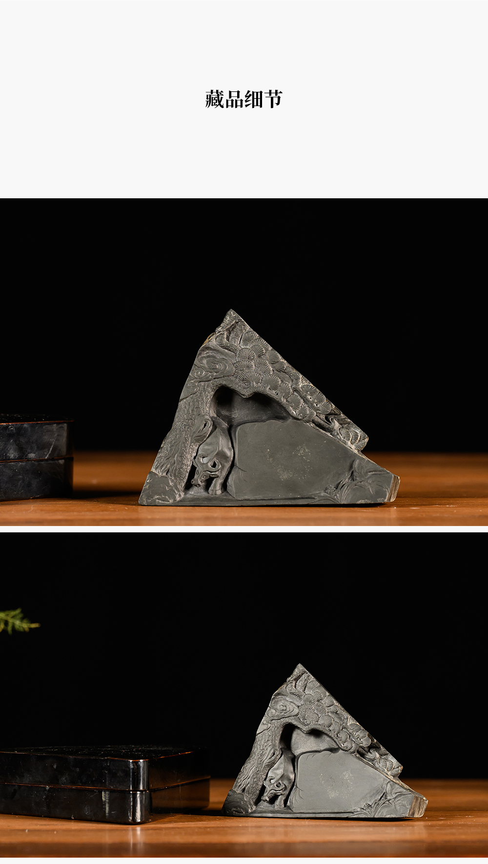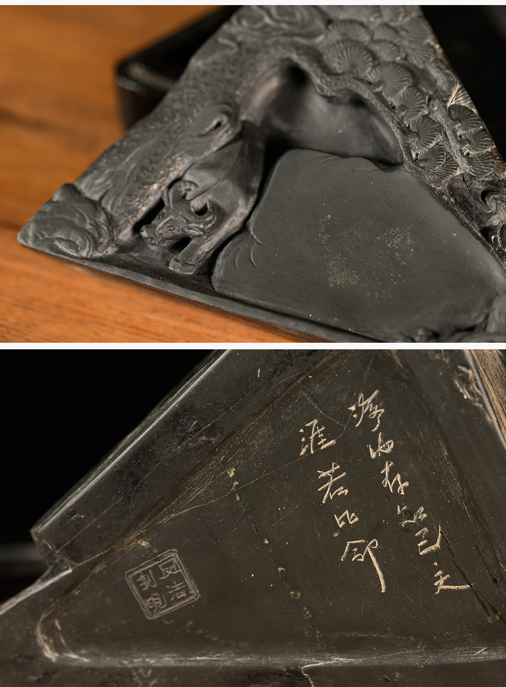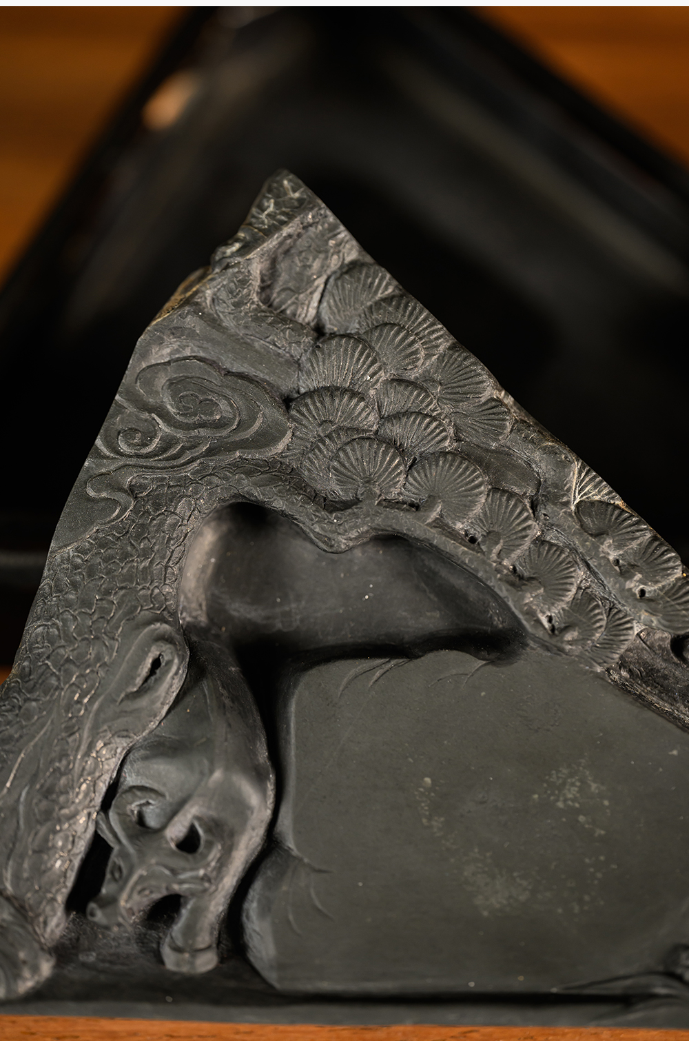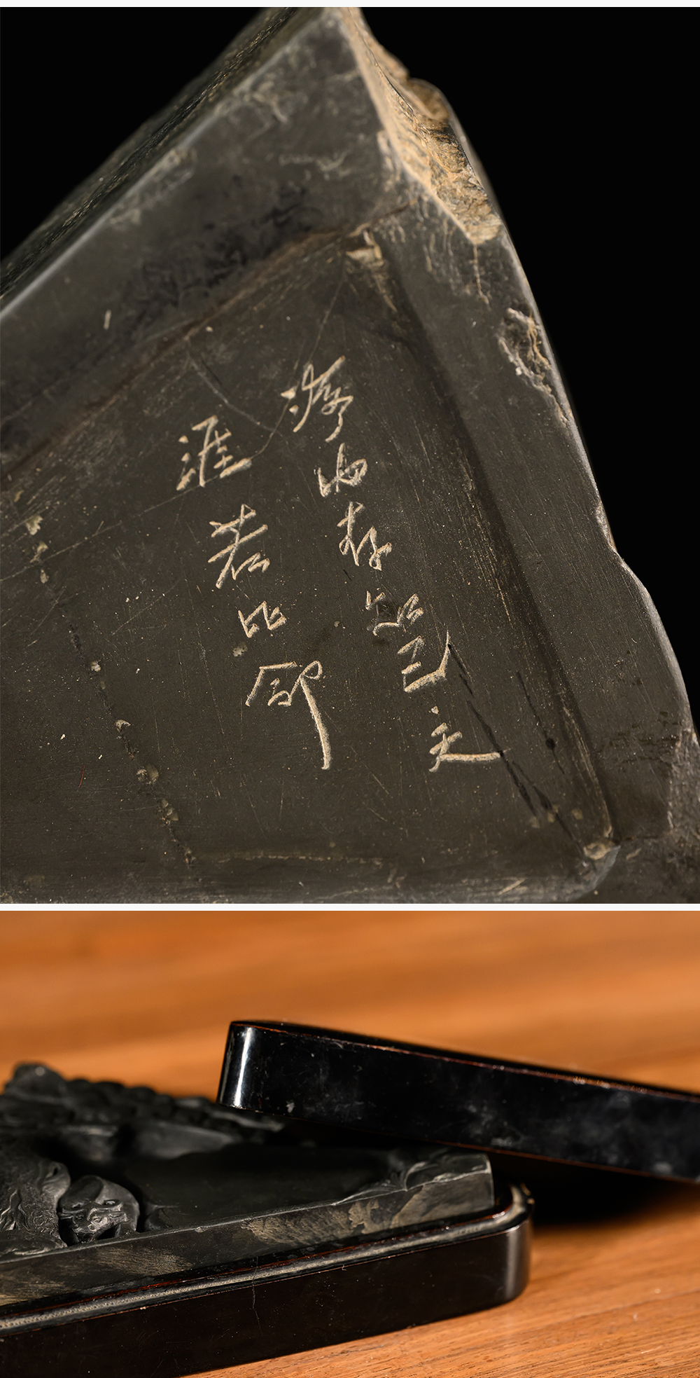 民国 松树牛纹歙砚(黑漆砚盒)
