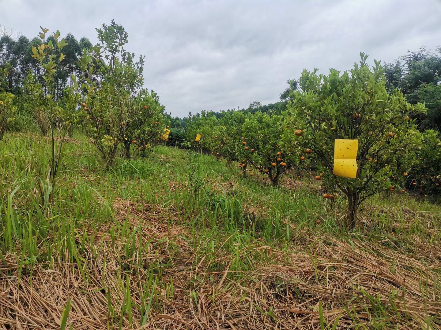 现有二十多亩地,种植南瓜橘和茂谷柑,果园三面环路,周边是树林,剩下一面为鱼塘,果园里的水井为灌溉水的来源。