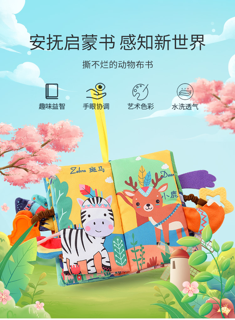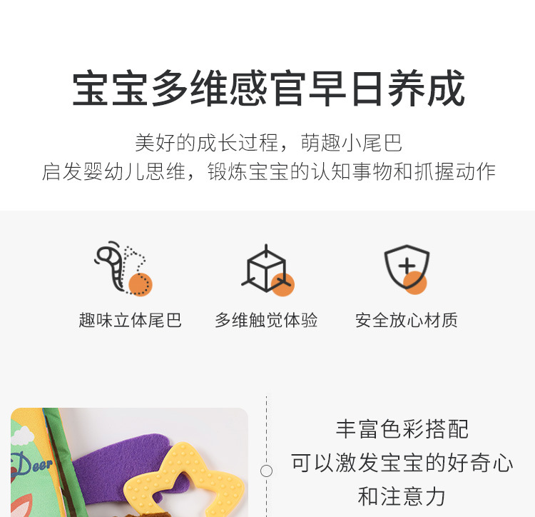 【婴儿尾巴布书 宝宝开发脑力 撕不烂布书】儿童响纸立体布书早教书玩具,撕不烂、耐用,安全无毒,适合0-3岁宝宝使用。-QQ