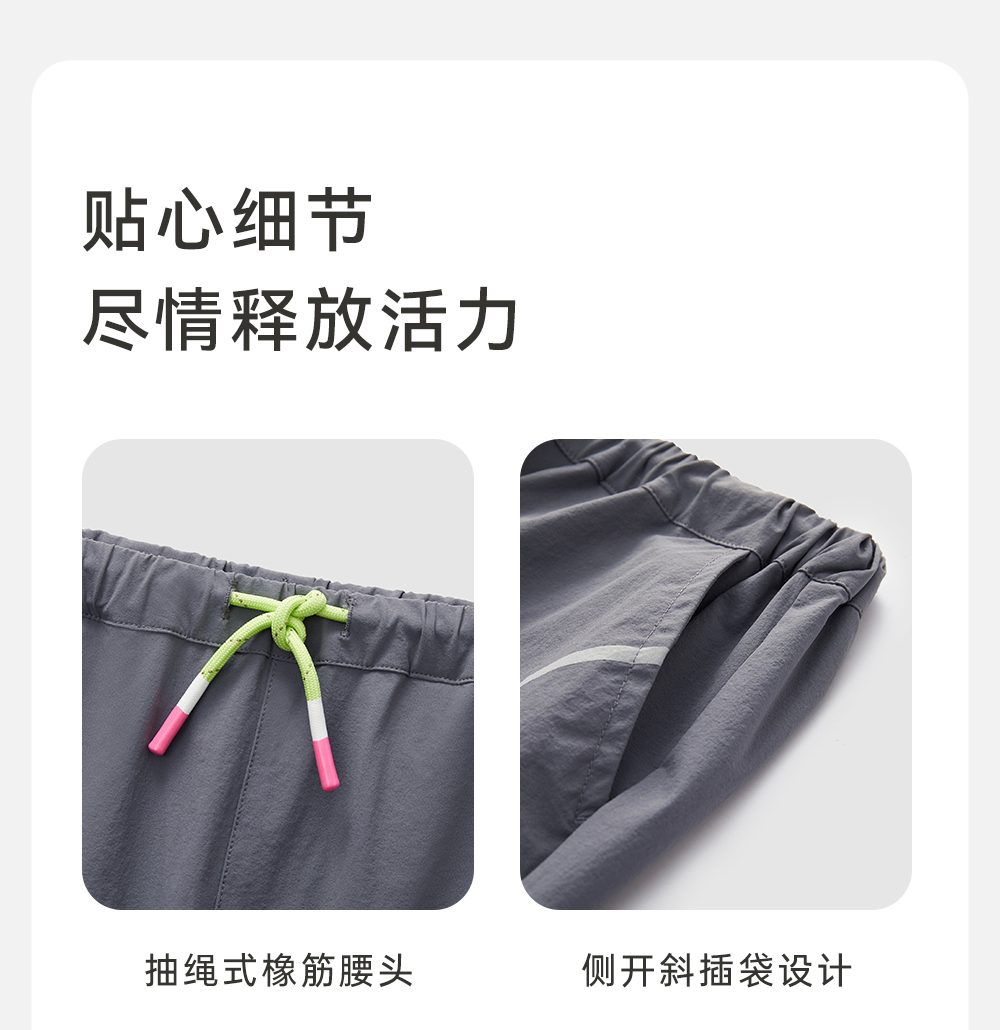 英氏速干裤透气儿童中裤夏季男宝休闲裤中大童裤子春夏新款