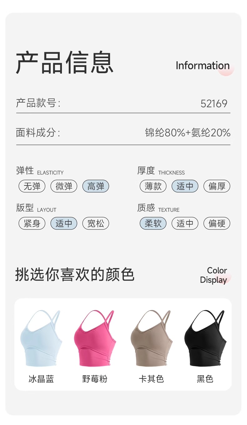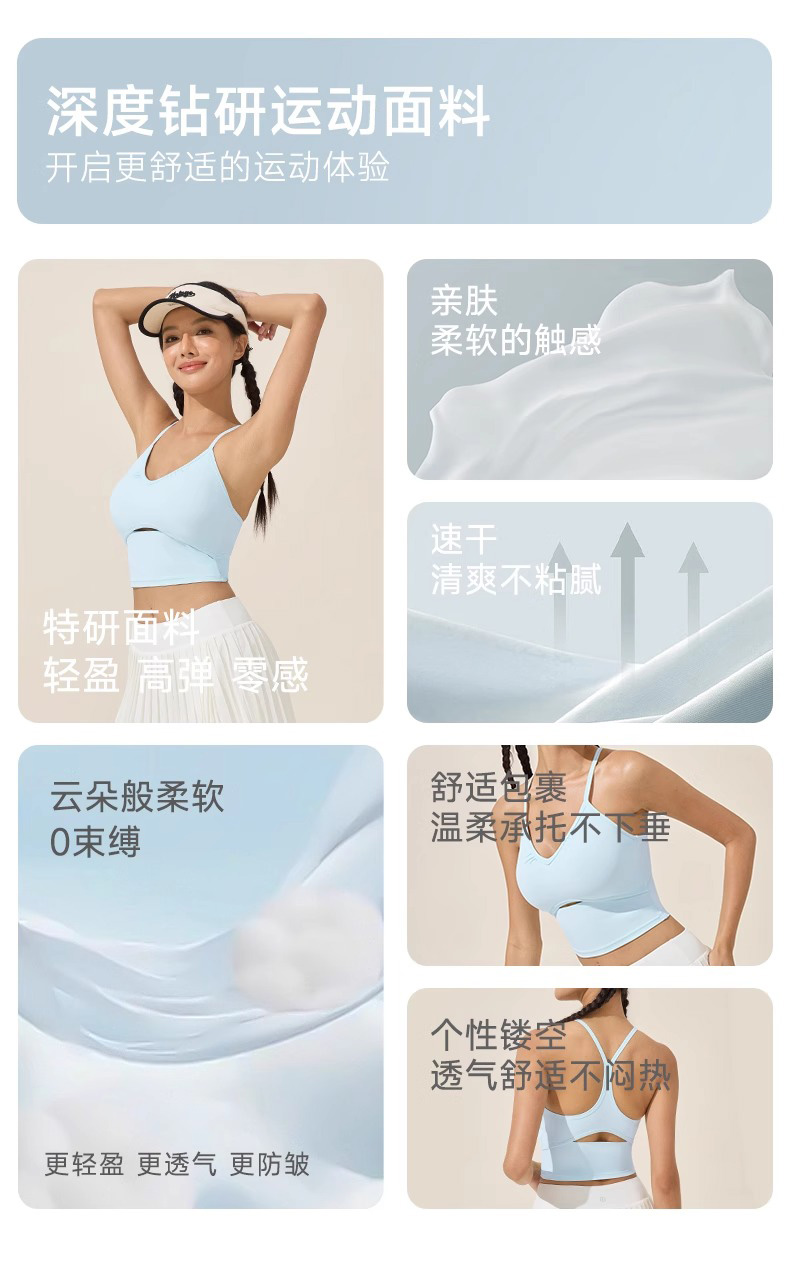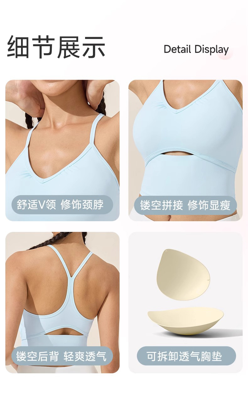 跃牌【欲动春风】系列 瑜伽背心女裸感V领吊带瑜伽服跑步健身文胸训练背心52169