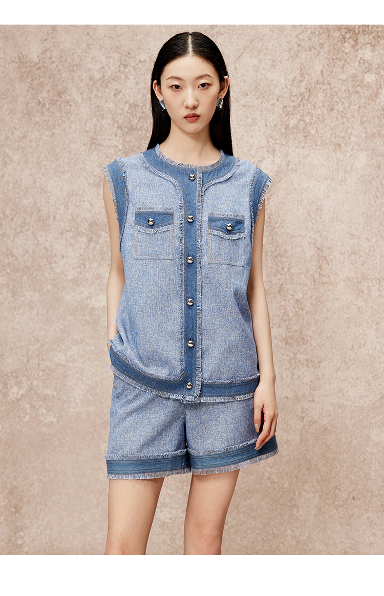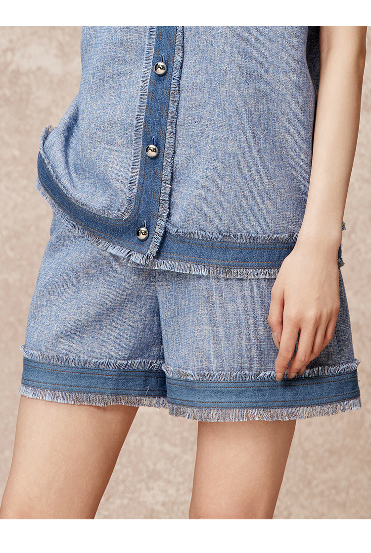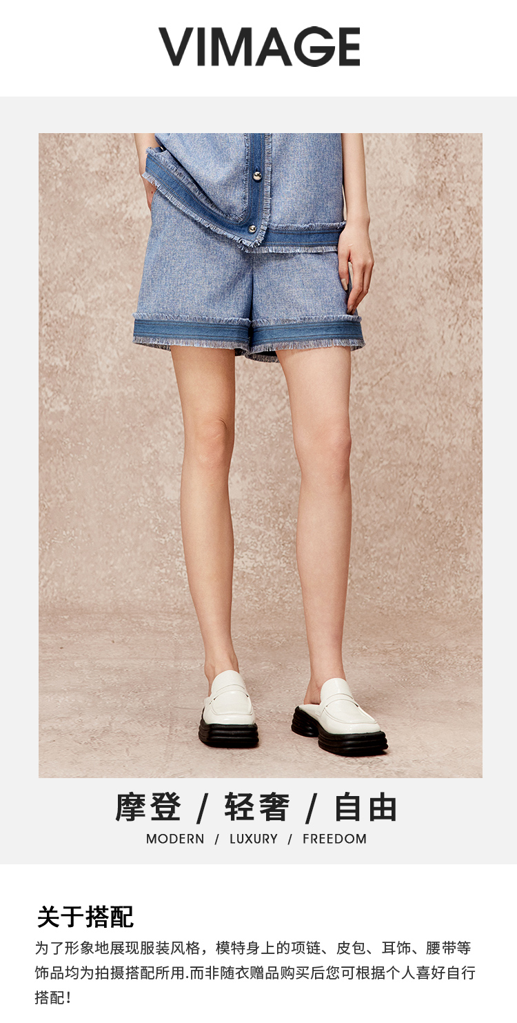 VIMAGE纬漫纪秋季新款时尚复古高腰显瘦通勤阔腿短裤V2205801