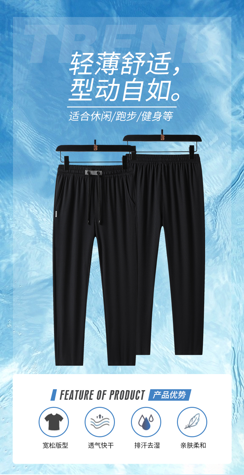 【冰丝速干】【新款DSK】大依优型大码冰丝裤松紧腰休闲运动裤直筒卫裤休闲裤加肥加大运动薄薄长裤胖子裤子夏季款