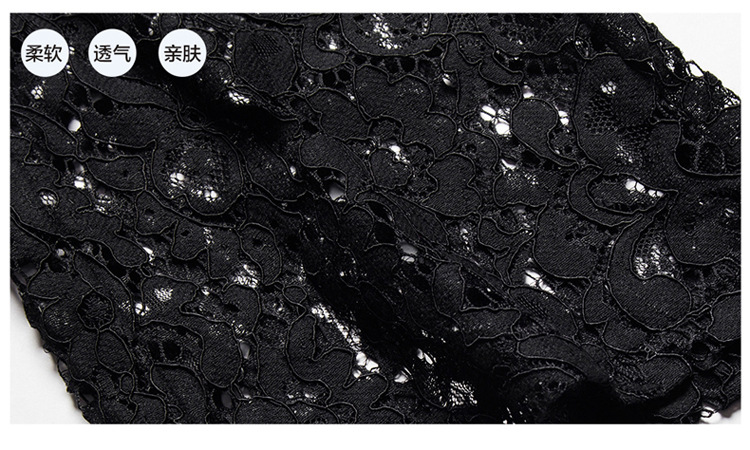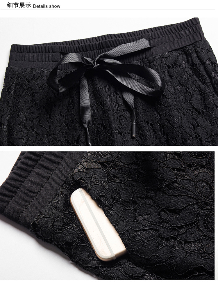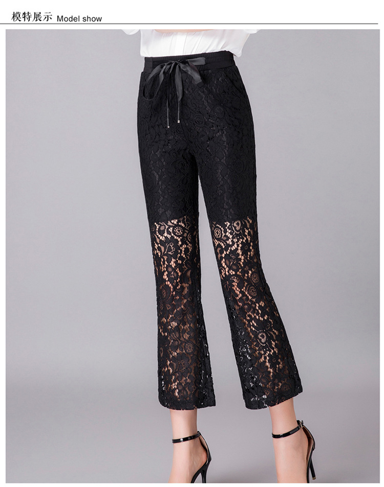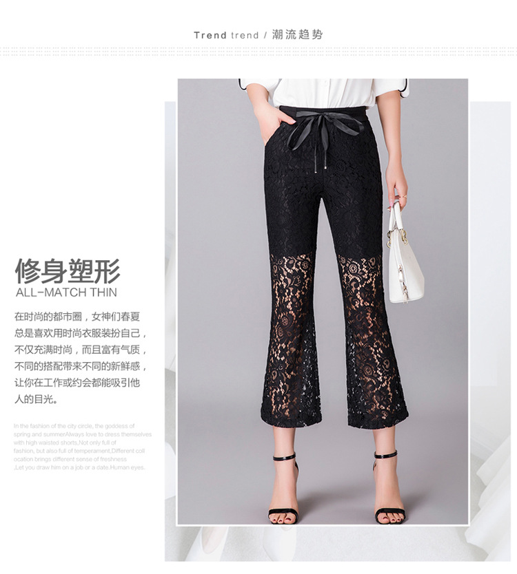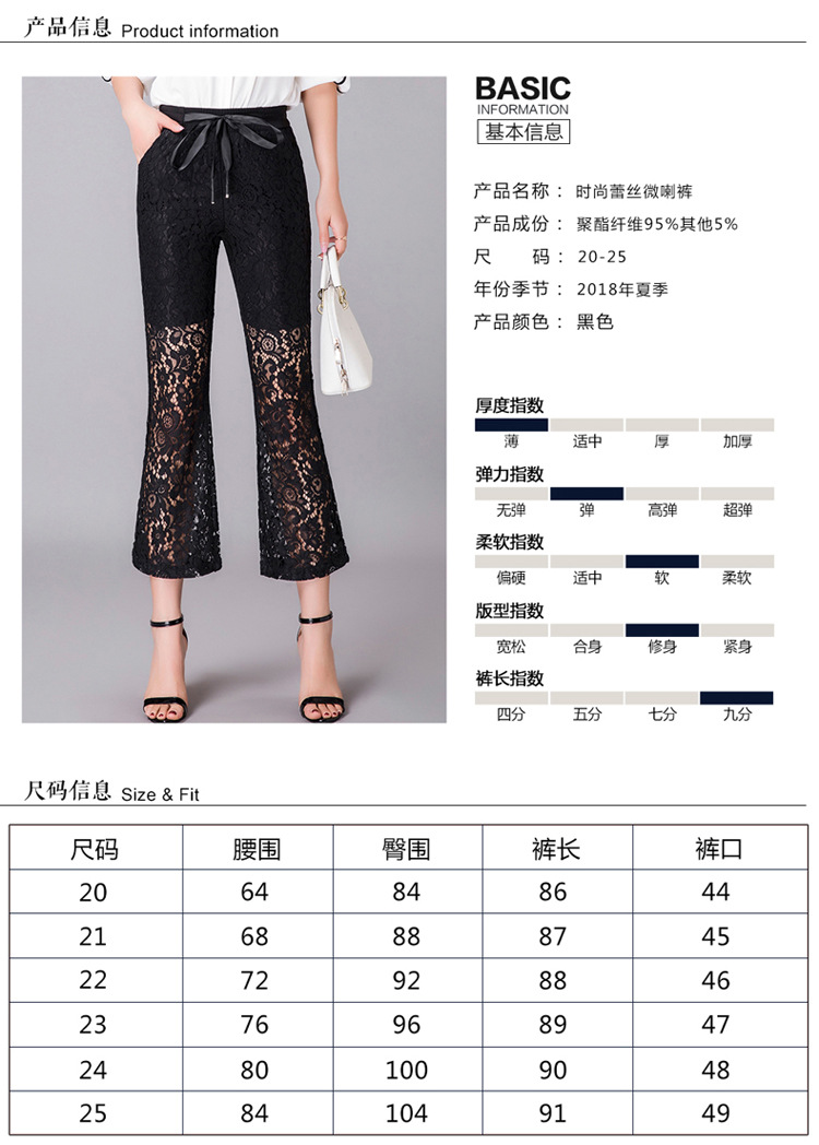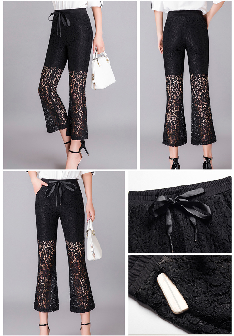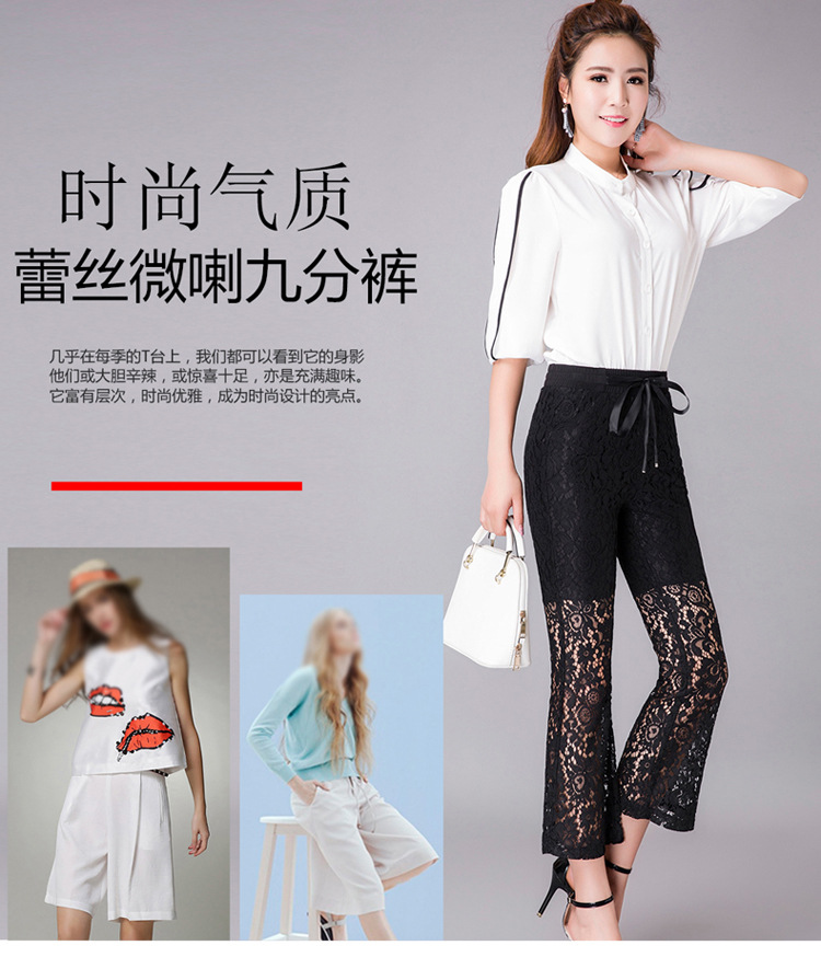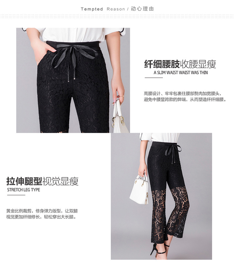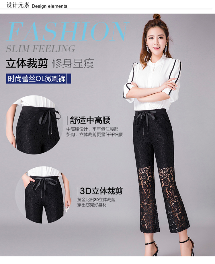 QYHY-725新款中高腰蕾丝弹力微喇裤九分时尚显瘦黑色休闲裤TZW