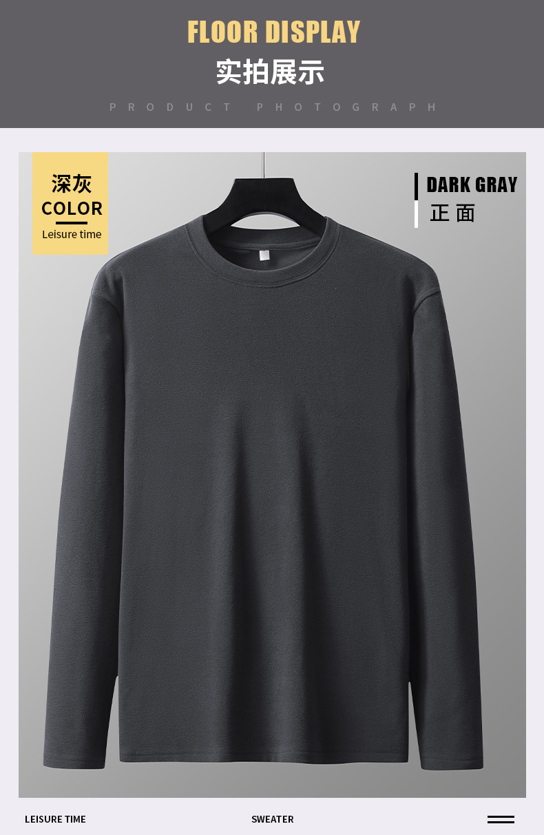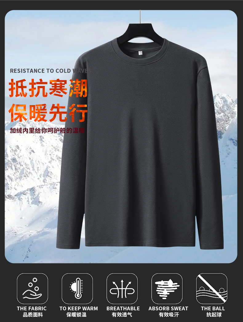 【圈】【新款DSK】大依优型大码加绒圆领长袖T恤德绒保暖男装加肥加大体恤大号上衣胖子打底