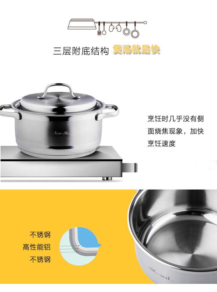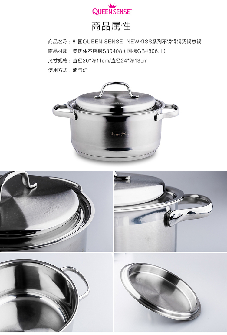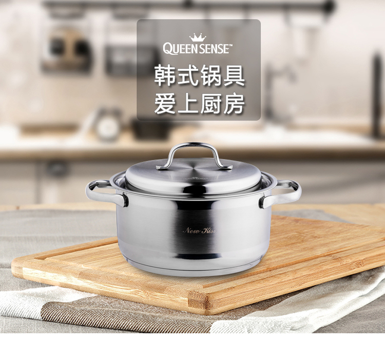 韩国原产QUEEN SENSE不锈钢锅汤锅煮锅NEWKISS系列20CM