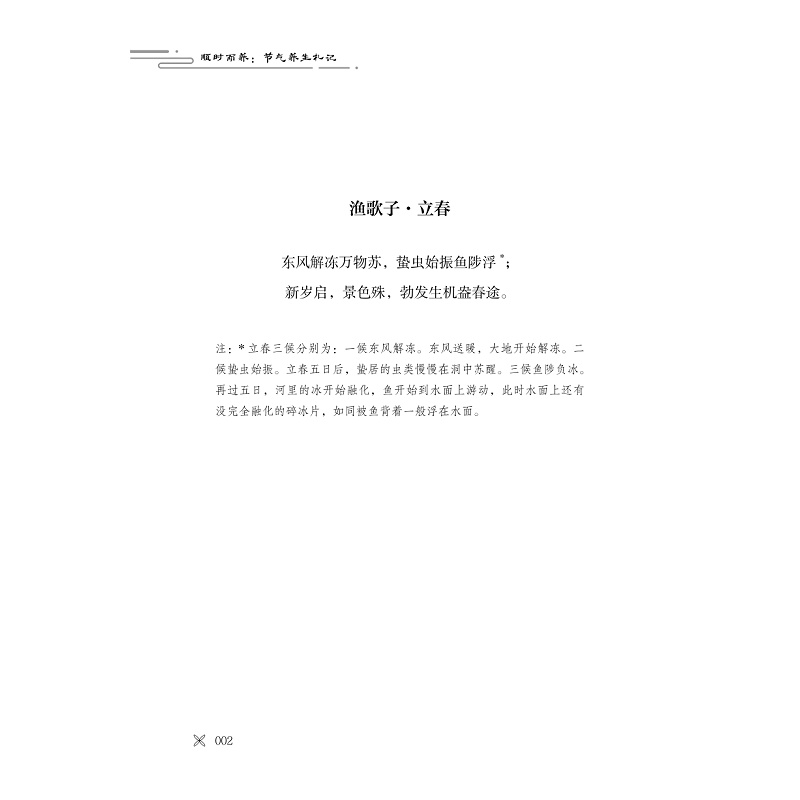 本书以跟着节气“学”养生、“话”养生、“品”养生为出发点,用原创诗词和专业短文介绍每个节气的特点,从“起居养生、饮食养生、运动养生、情志养生、穴位养生、养生药膳、养生茶饮、养生足浴、养生功法”等九个方面传承中华养生智慧,细数四时阴阳变化之理,晓喻节气养生宜忌,为人民的健康保驾护航。