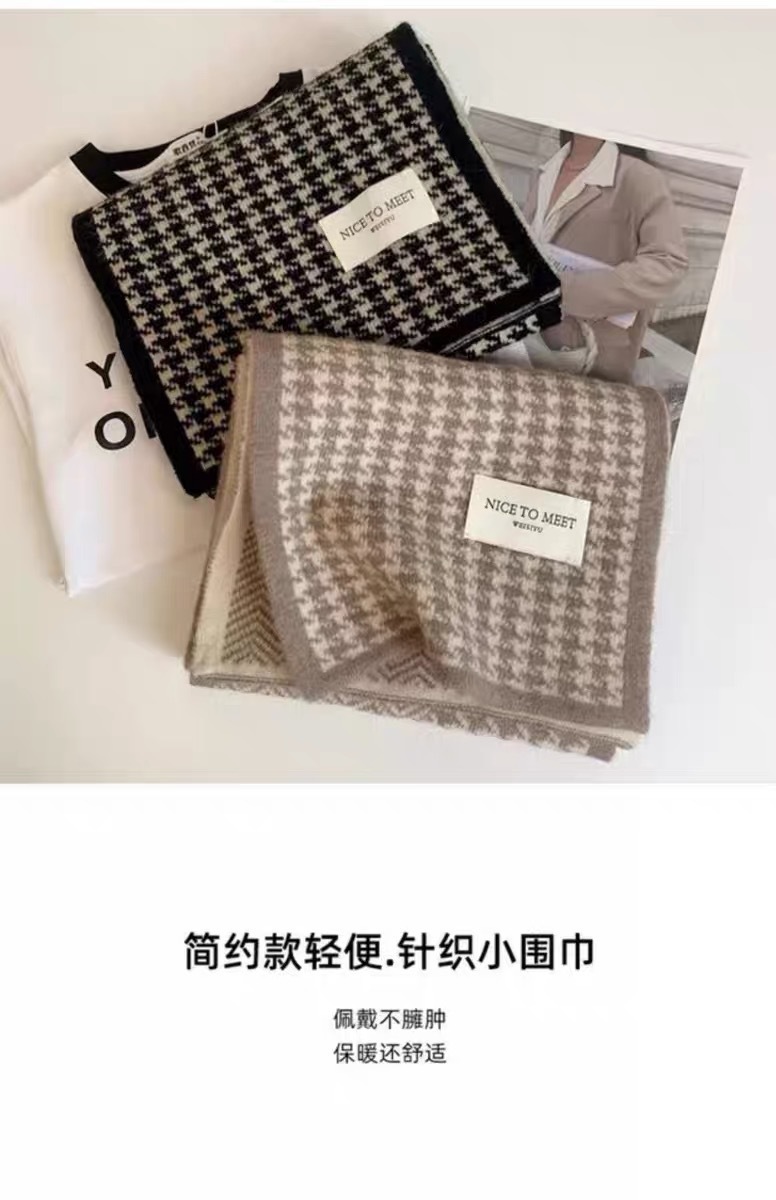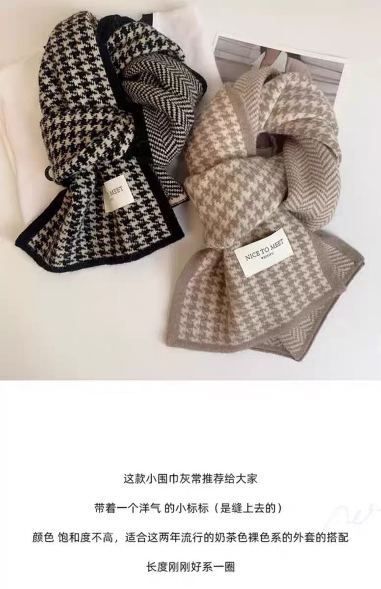 【39.9两条!买一送一】千鸟格围巾女 冬季加厚保暖护颈针织围脖 双面防寒 复古百搭防风披肩-QQ