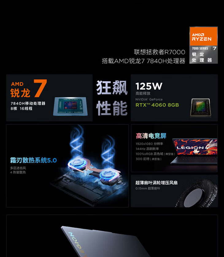 联想 拯救者R7000 15.6英寸超能电竞本 钛晶灰