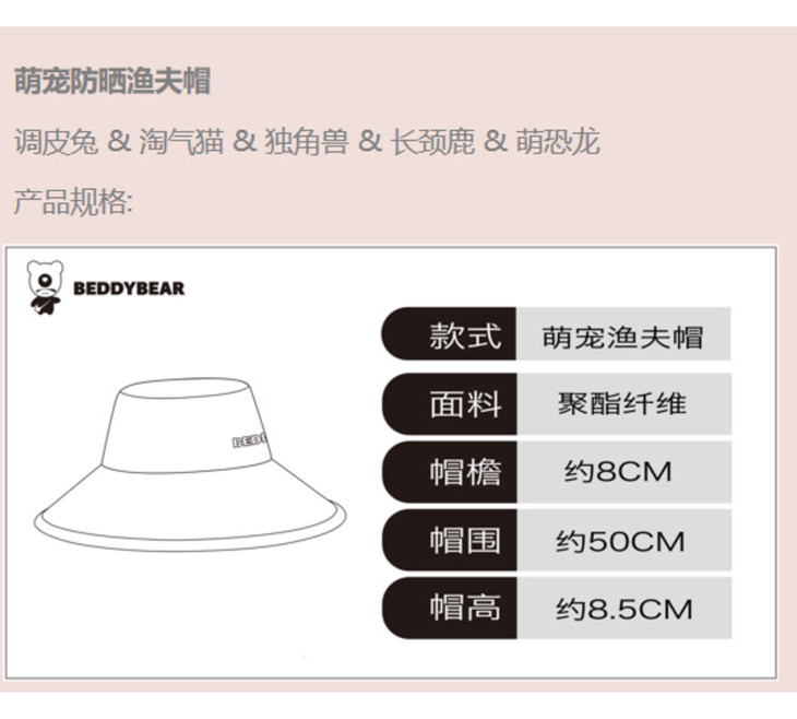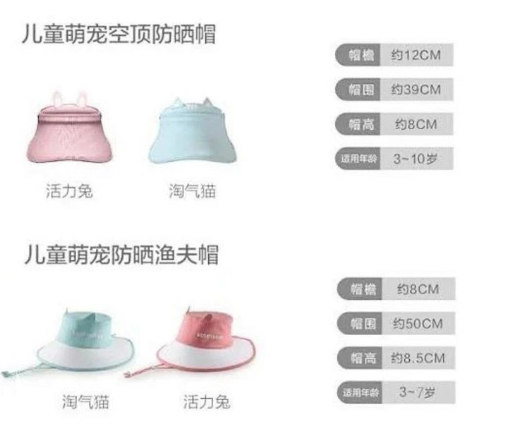 5折~儿童萌宠专业防晒渔夫帽&空顶防晒帽 清仓不退不换
