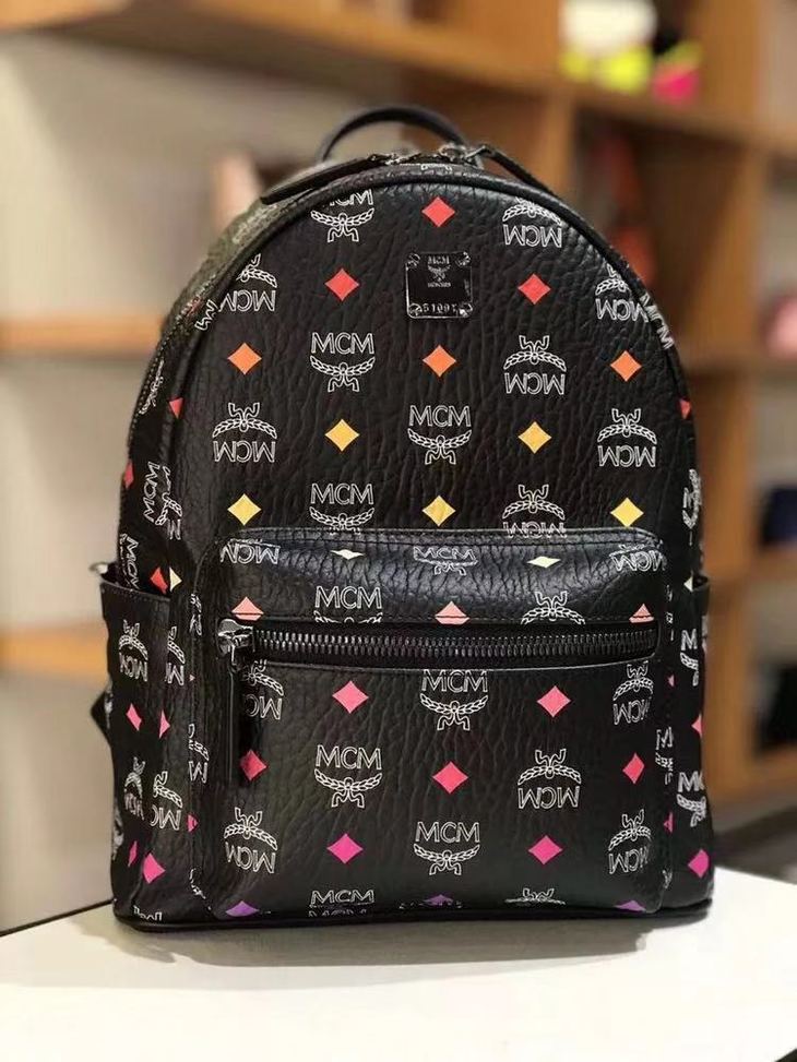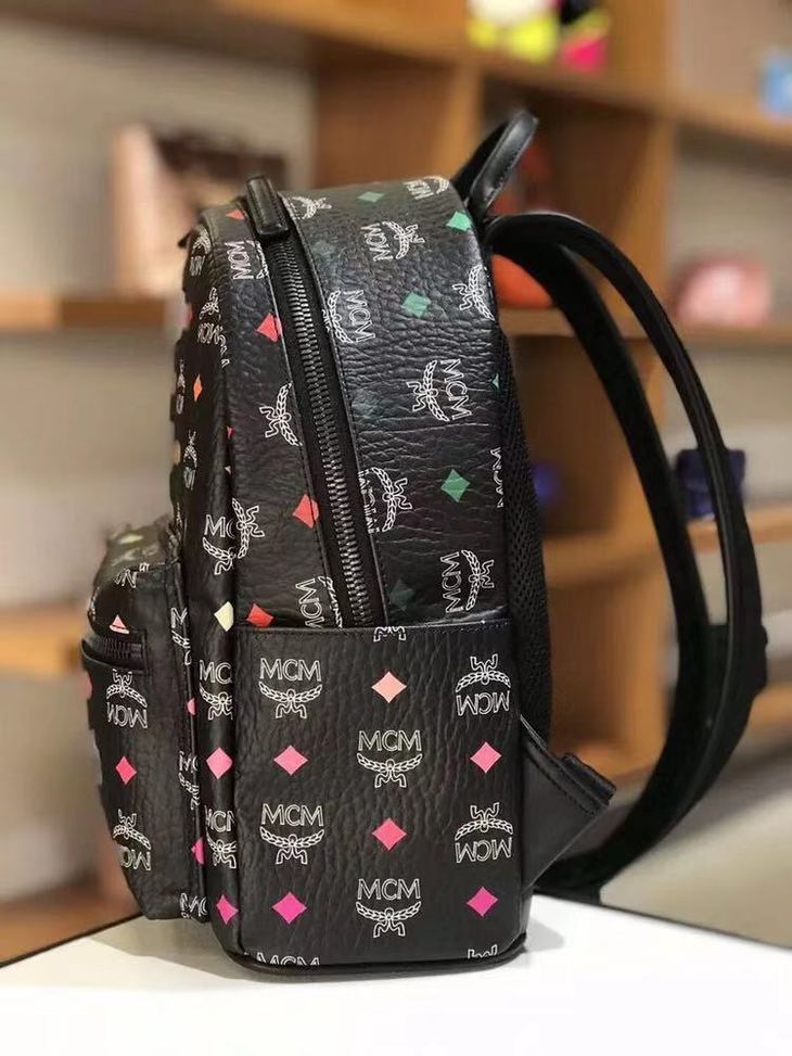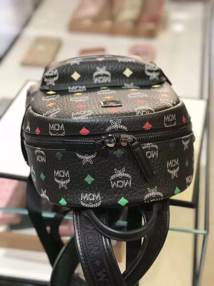 LA现货 MCM男女同款黑色幻彩小号印花LOGO双肩包背包 原价950美金 官网售价5999 现仅售3499