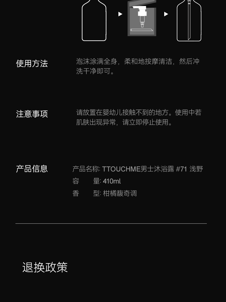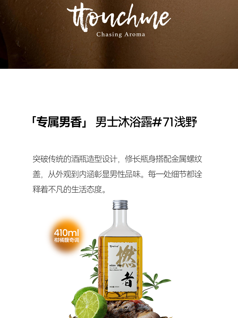 【TT会员】TTOUCHME“撚者”男士香水沐浴露410ml 持久留香沐浴露木质调情侣沐浴露 男士沐浴露