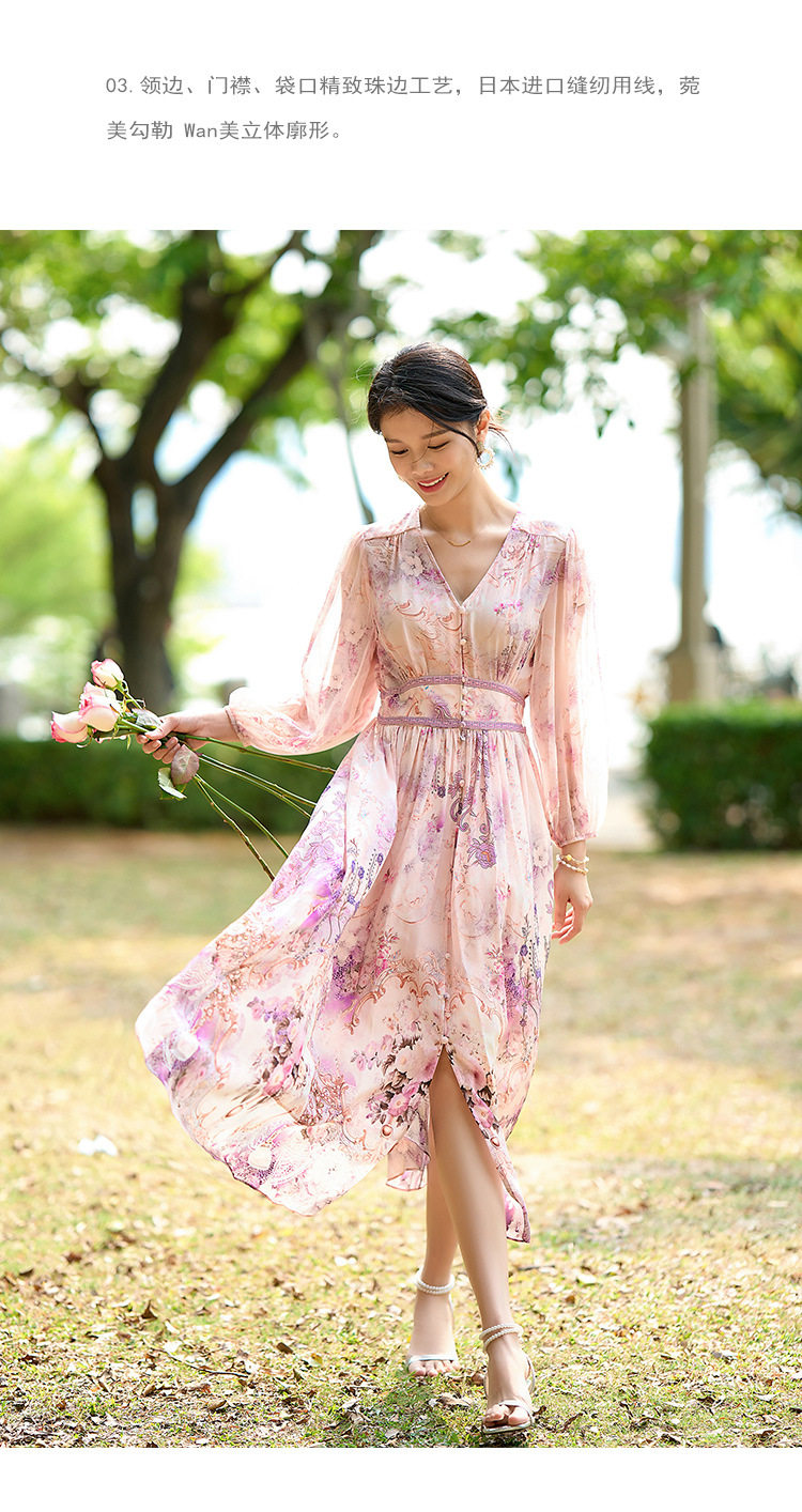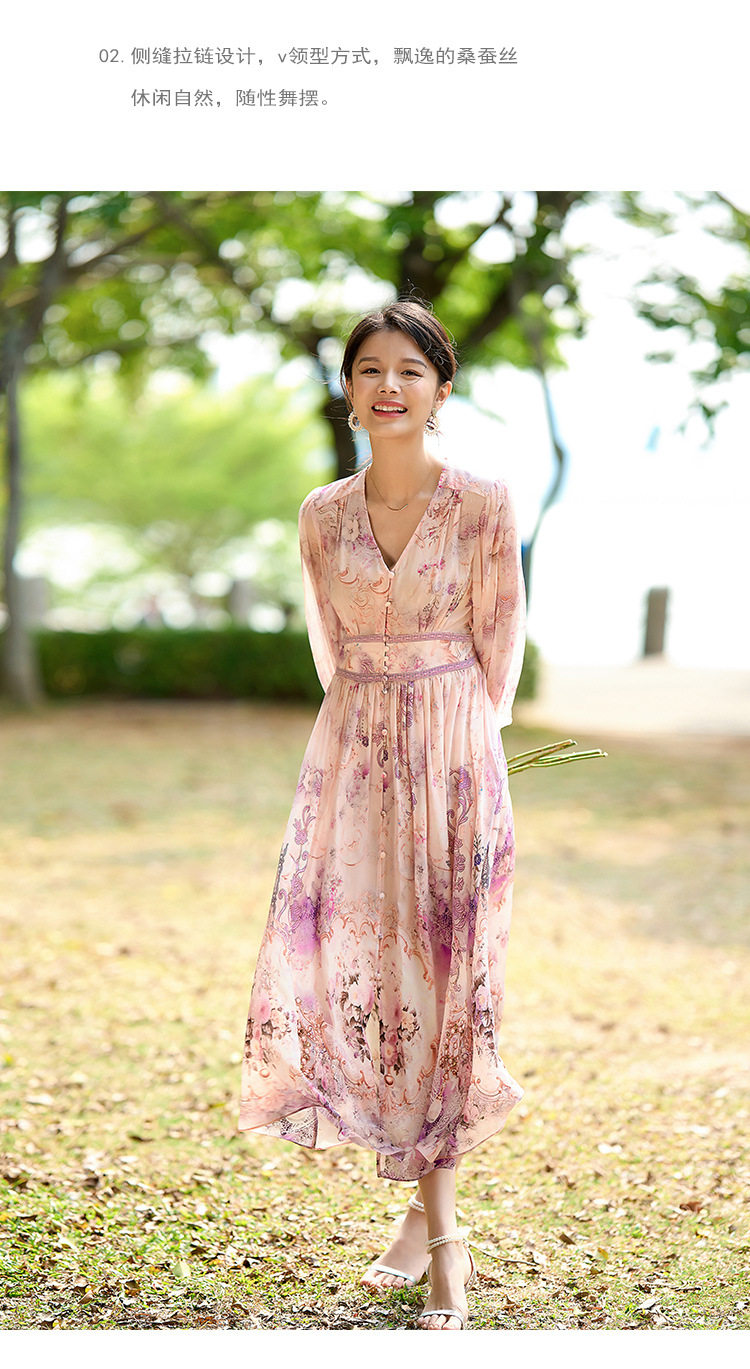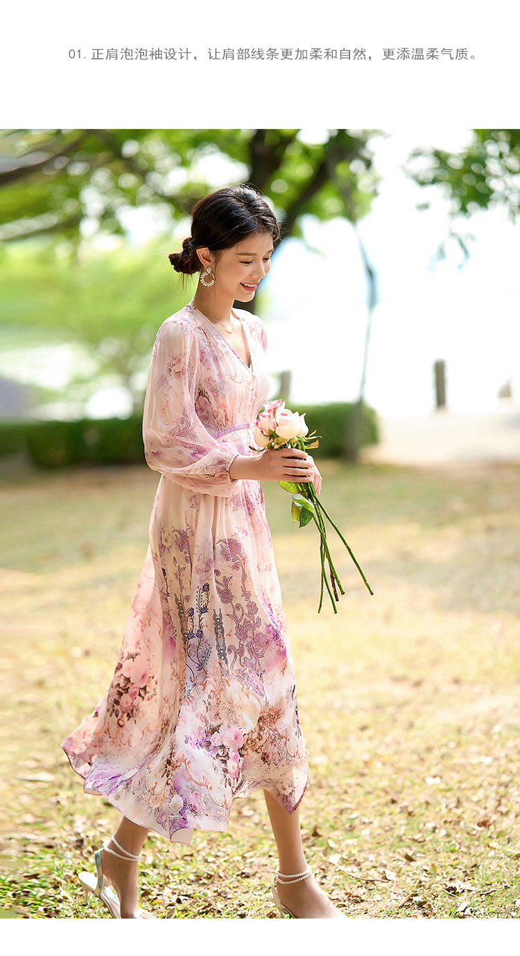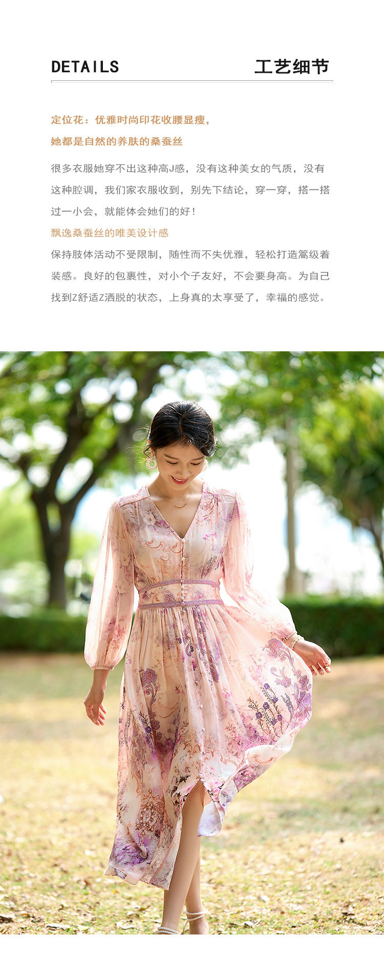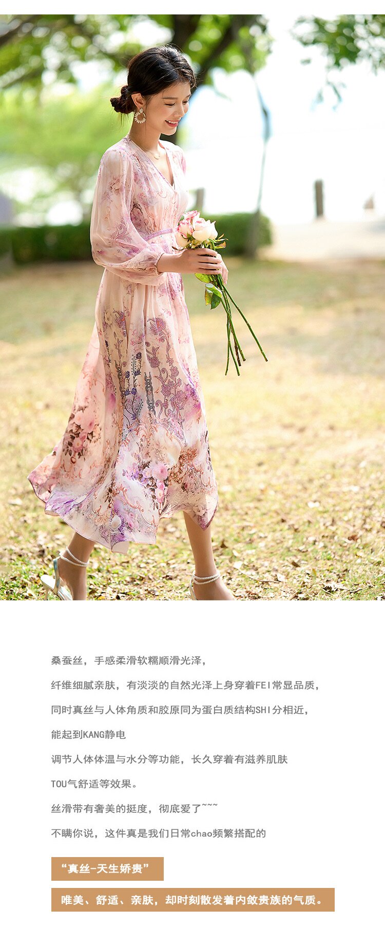 「预售」)「自」全新升级【铂金会员661/天猫899/差价238】(02638)洛诗琳气质真丝印花连衣裙2026春季新款优雅显瘦V领蚕丝裙