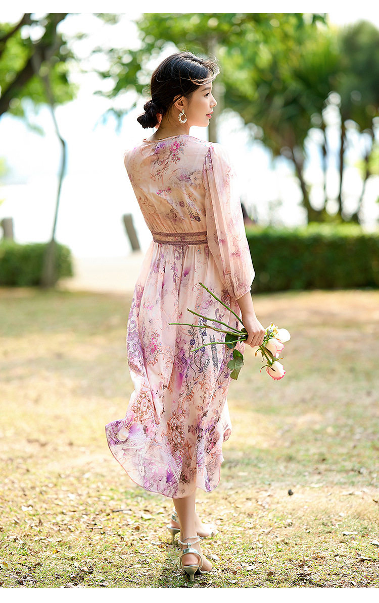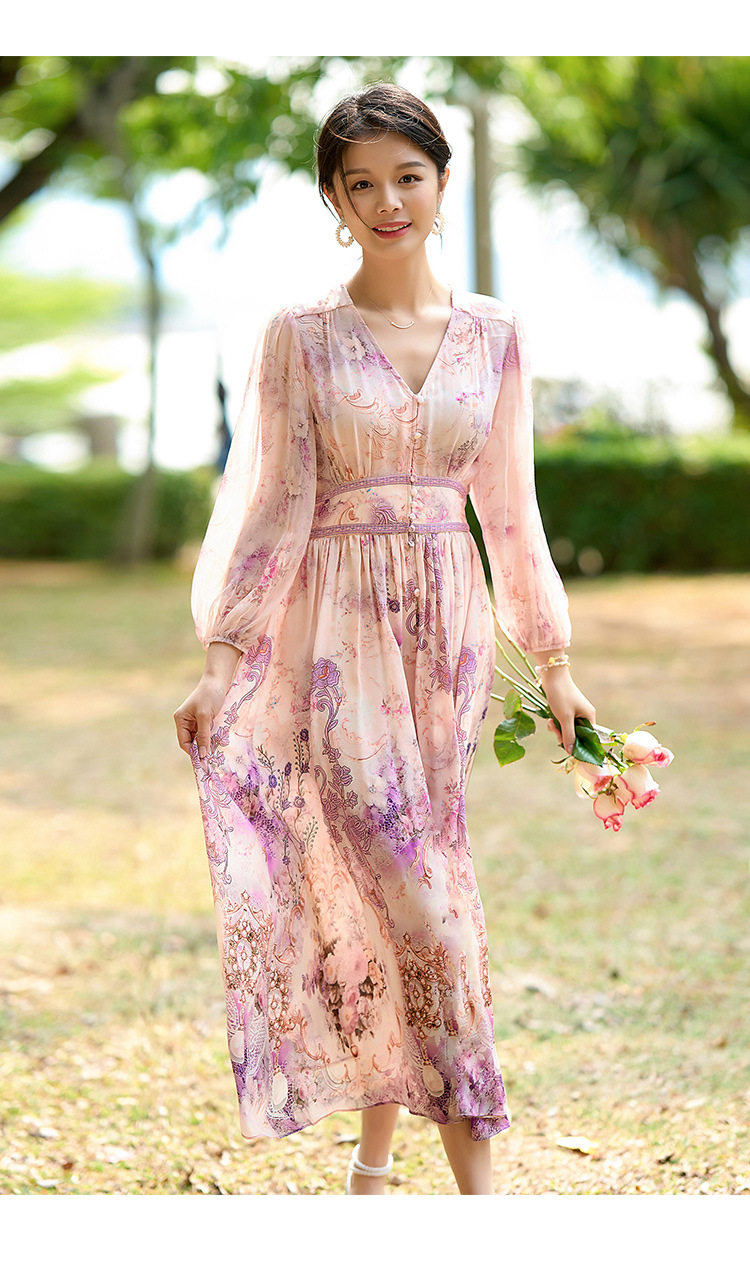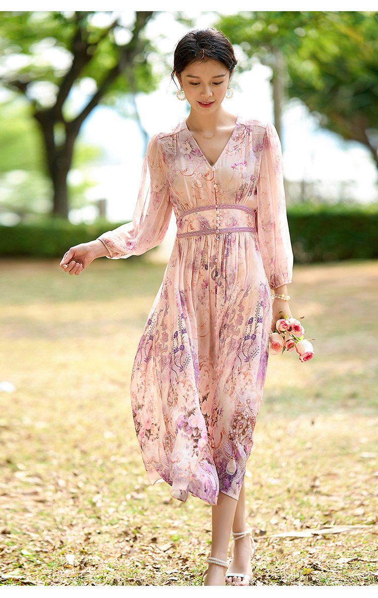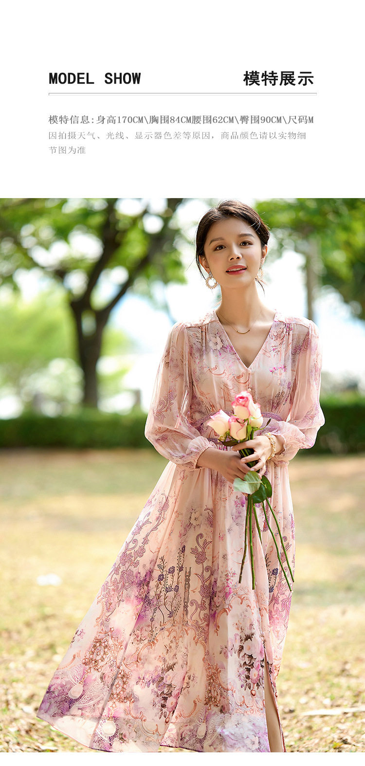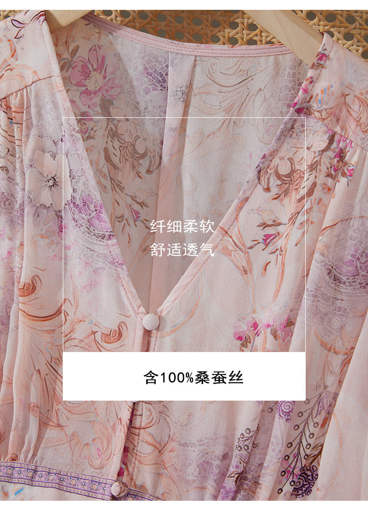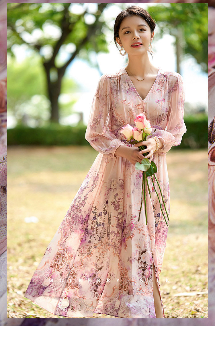 「预售」)「自」全新升级【铂金会员661/天猫899/差价238】(02638)洛诗琳气质真丝印花连衣裙2026春季新款优雅显瘦V领蚕丝裙