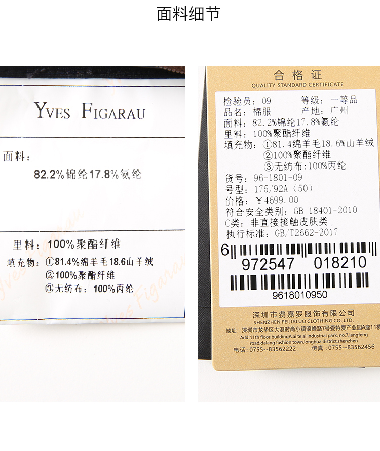 YvesFigarau伊夫·费嘉罗棉衣961801