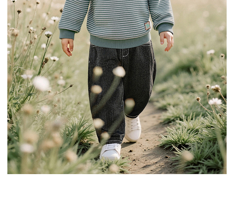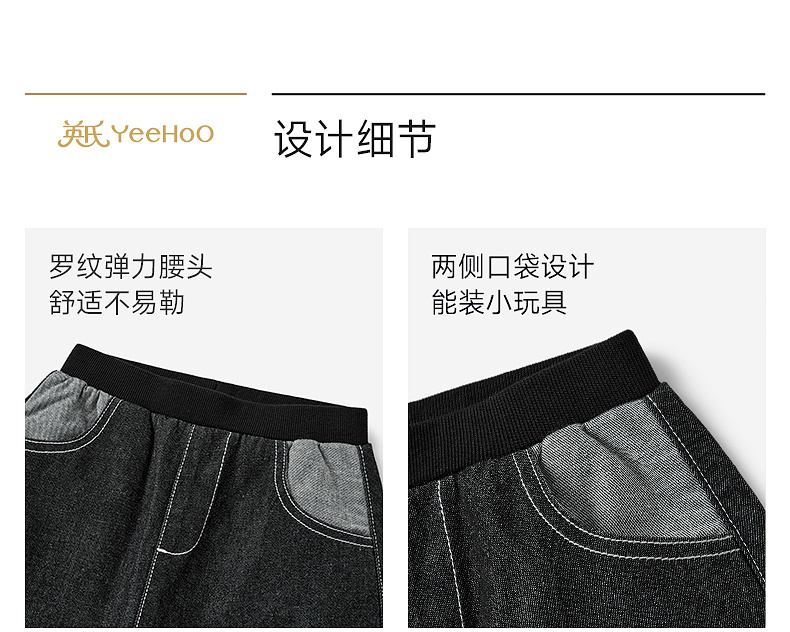 【商场同款】英氏儿童裤子男童长裤春夏黑色牛仔裤百搭新款休闲裤