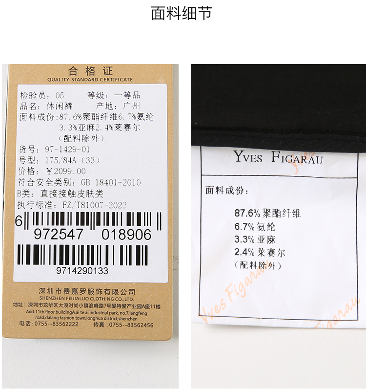 YvesFigarau伊夫·费嘉罗新款休闲裤971429
