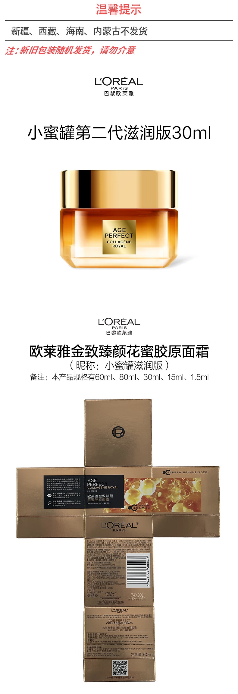 L'OREAL欧莱雅 金致臻颜小蜜罐滋润霜30ml 580063
