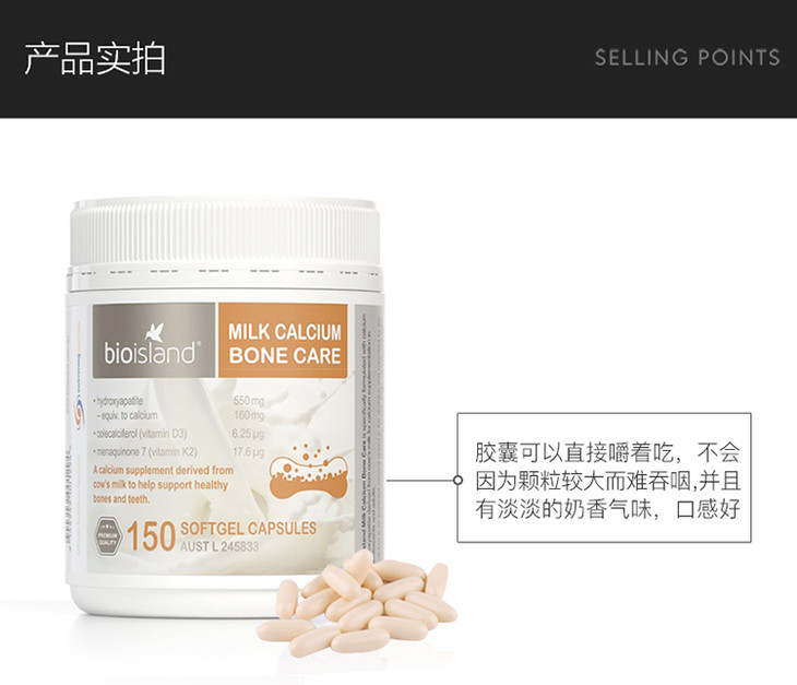 【全家补钙】澳洲 BIO ISLAND 生物岛成人大乳钙软胶囊 150粒