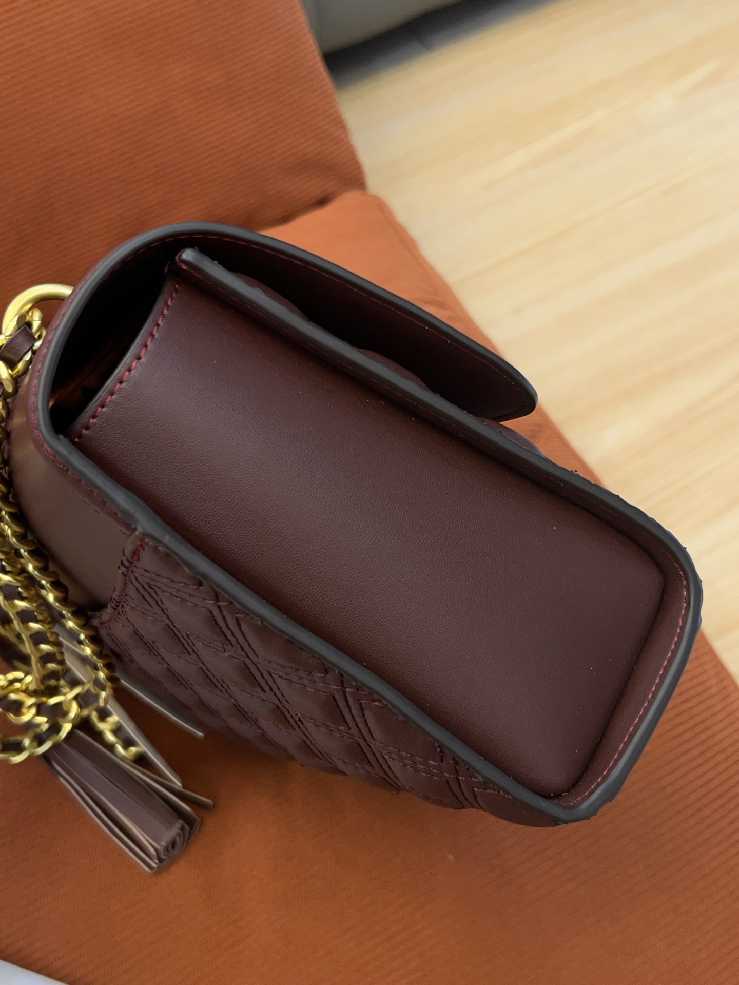 金色logo链条搭配,羊皮材质,菱格纹设计高级感十足