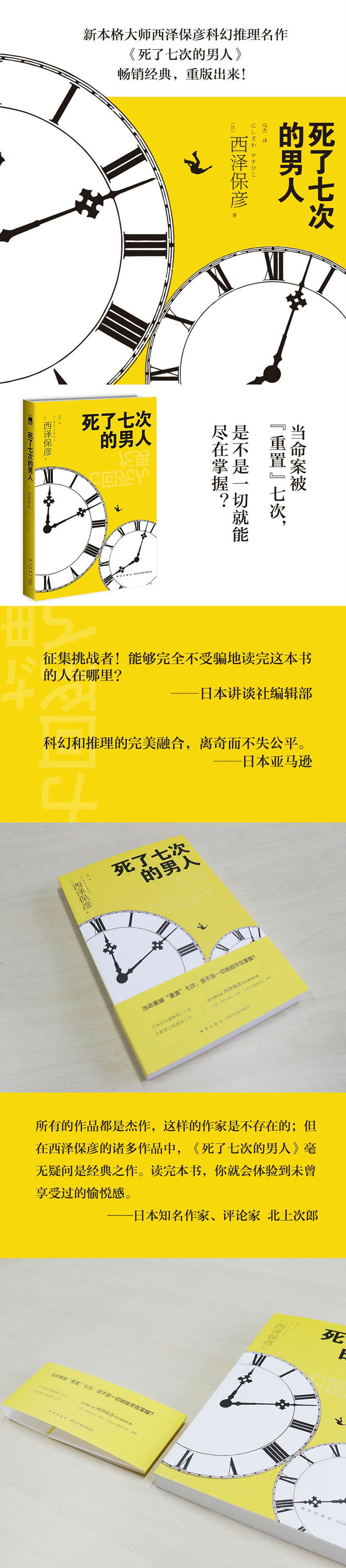 ★在一个时空反复的世界,主人公借助自己的行动影响事件的进程,从而改变zui终的结果,在这样的设定下植入本格推理元素,想来是可以有多种“玩法”的。西泽保彦没有用猜凶手或是猜诡计的方式,而是在时空反复中安排主角一次次地预防犯罪,与既定发生的事件抗争,与“命运”抗争,而将本格的、真正具有冲击性的谜团,掩藏在不同时空的不协调之处。巧布局堪称精妙,真相绝对出人意料。