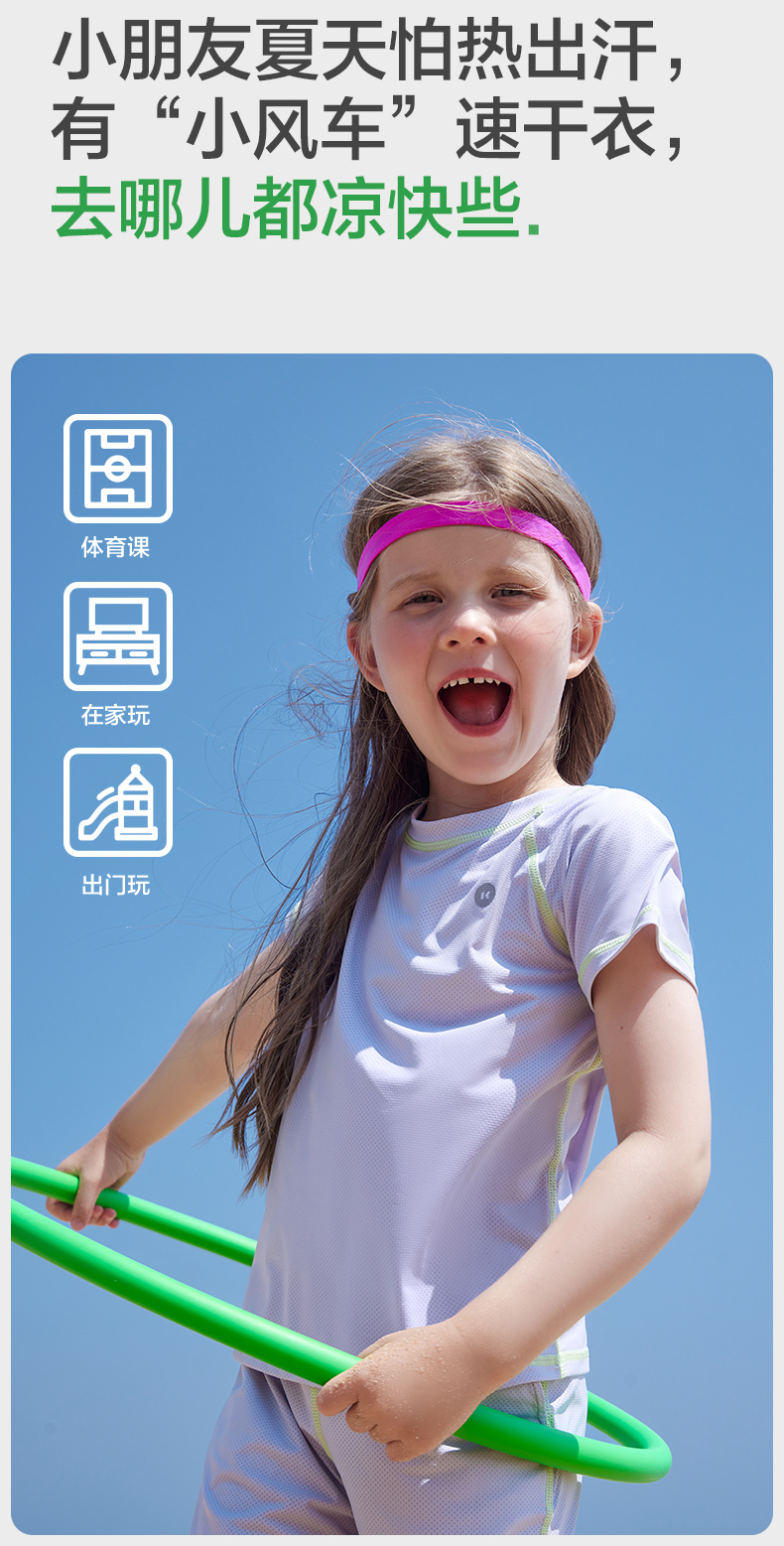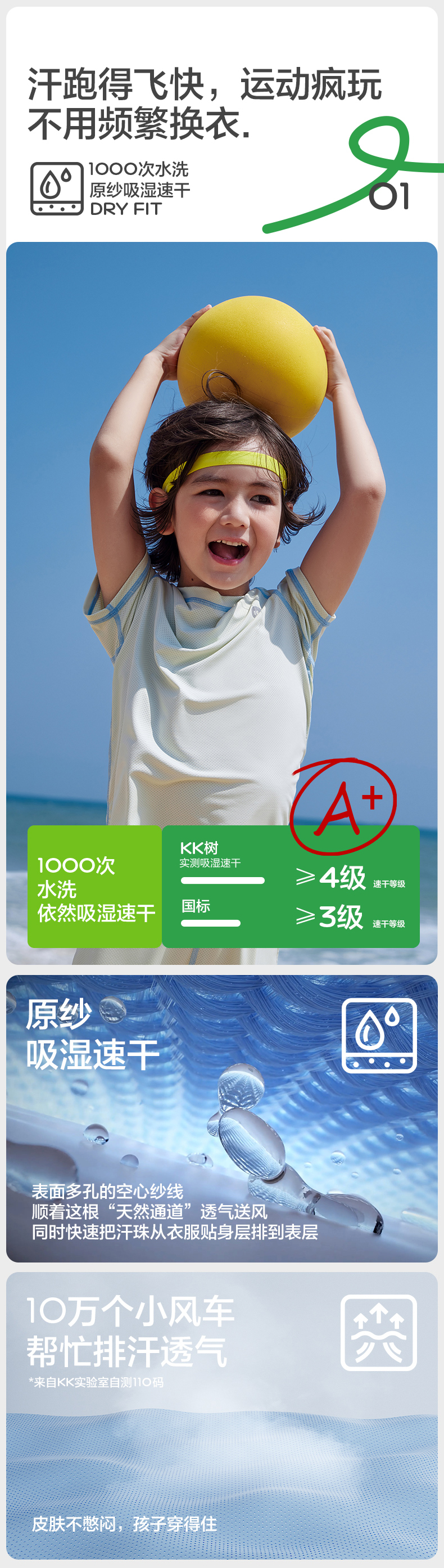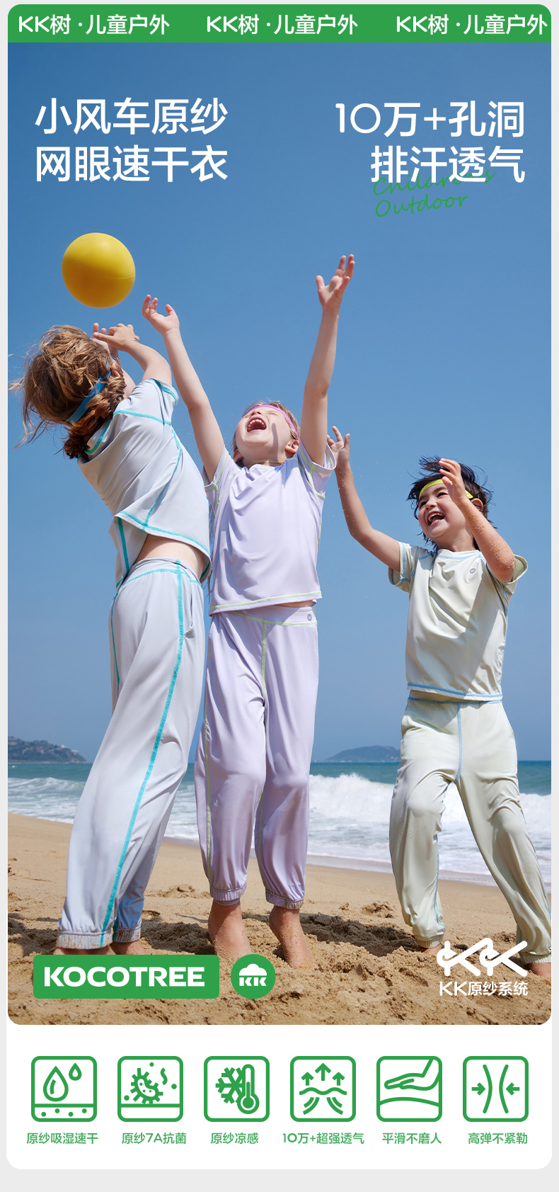 KK树原纱儿童速干衣套装男童女童短袖t恤户外夏季吸汗运动套装小风车排汗T