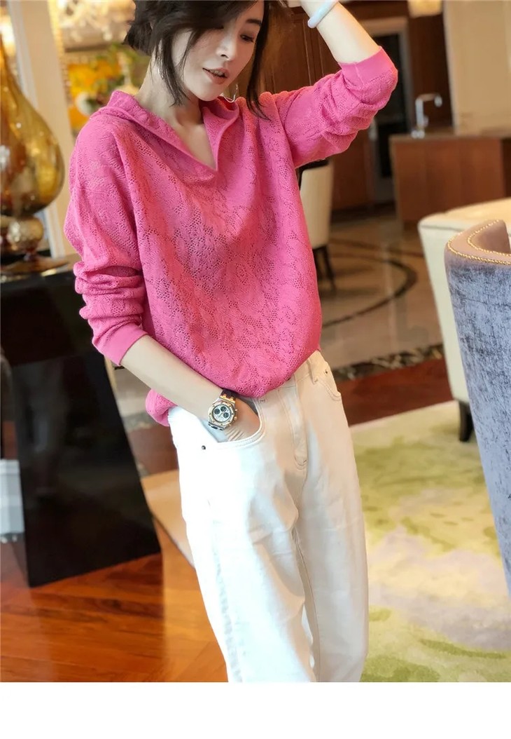 PDD-TYMJ200812新款潮流时尚气质宽松镂空蕾丝提花连帽上衣