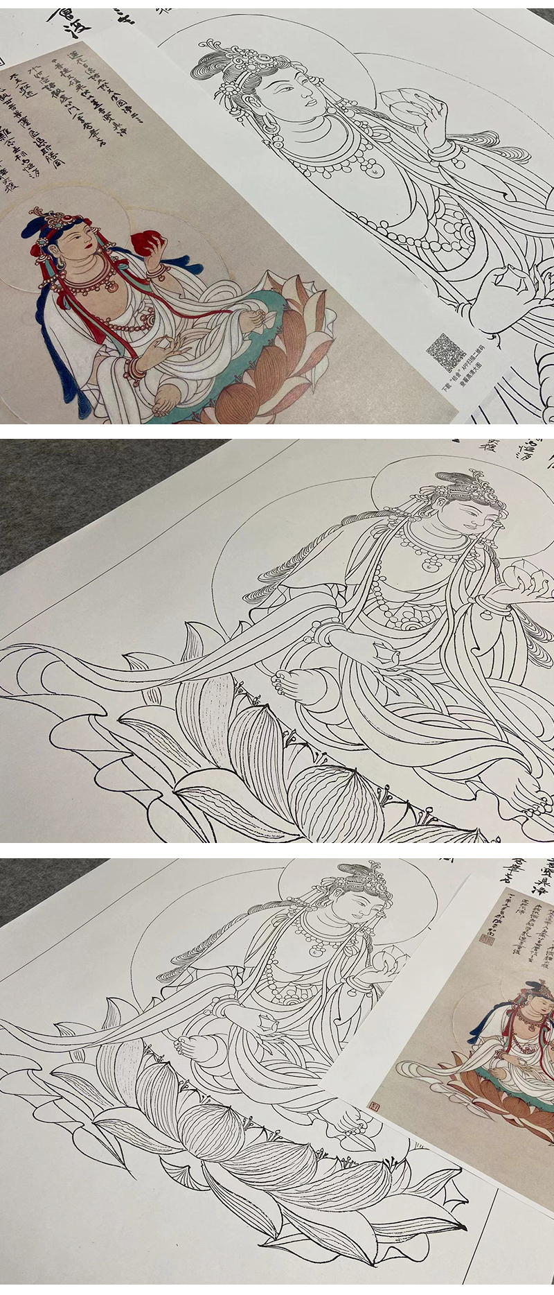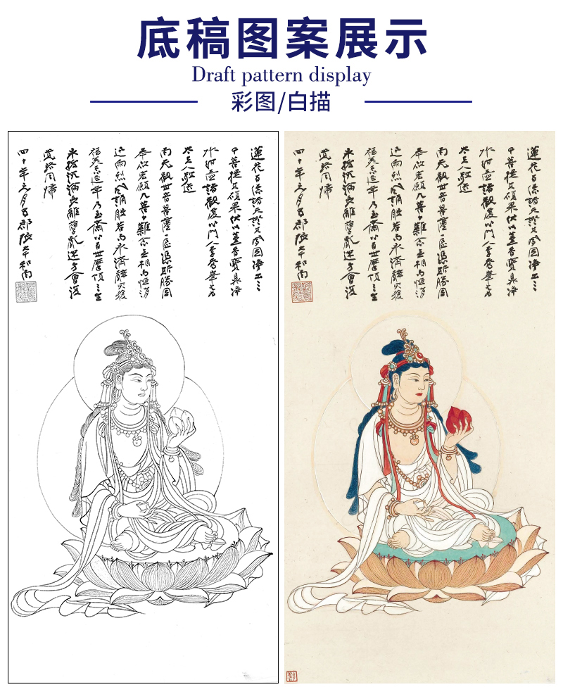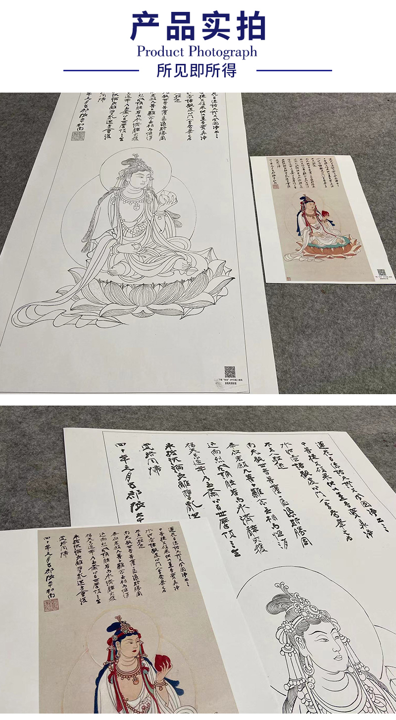 张大千竖幅工笔人物白描底稿-观音佛像- 《菩萨造像》-QD66