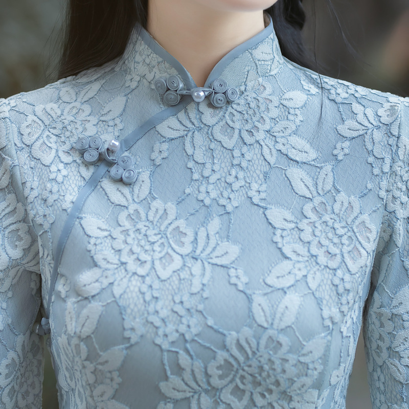 ZAYS-5188冬季羽毛纱改良倒大袖旗袍日常年轻淑女气质旗袍批发
