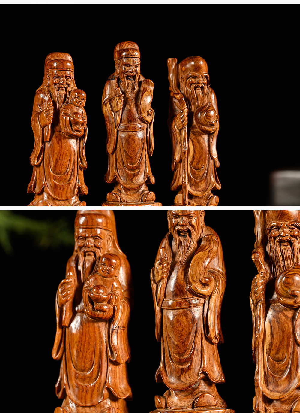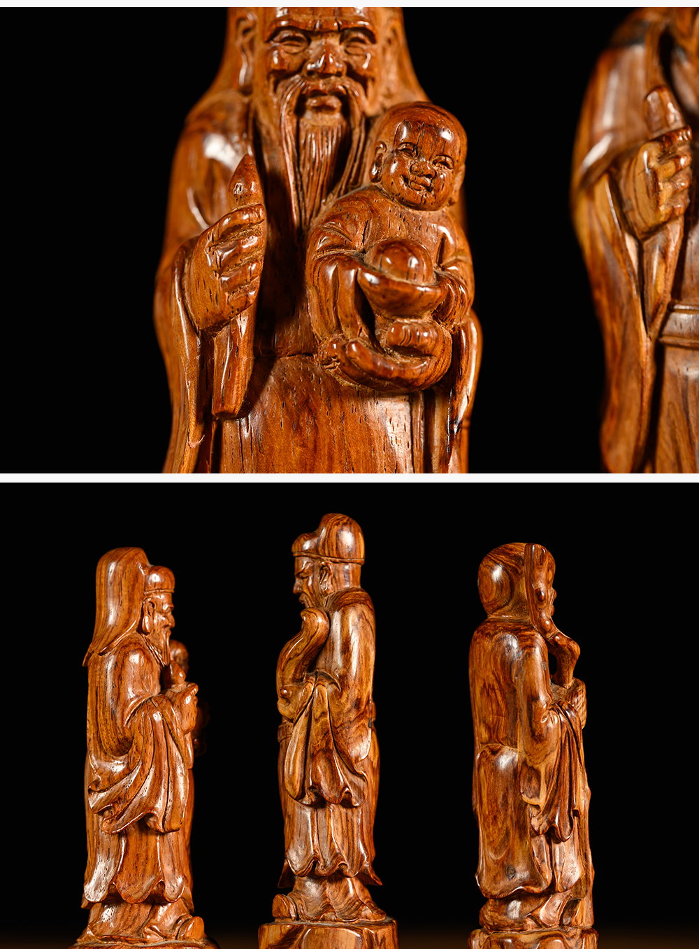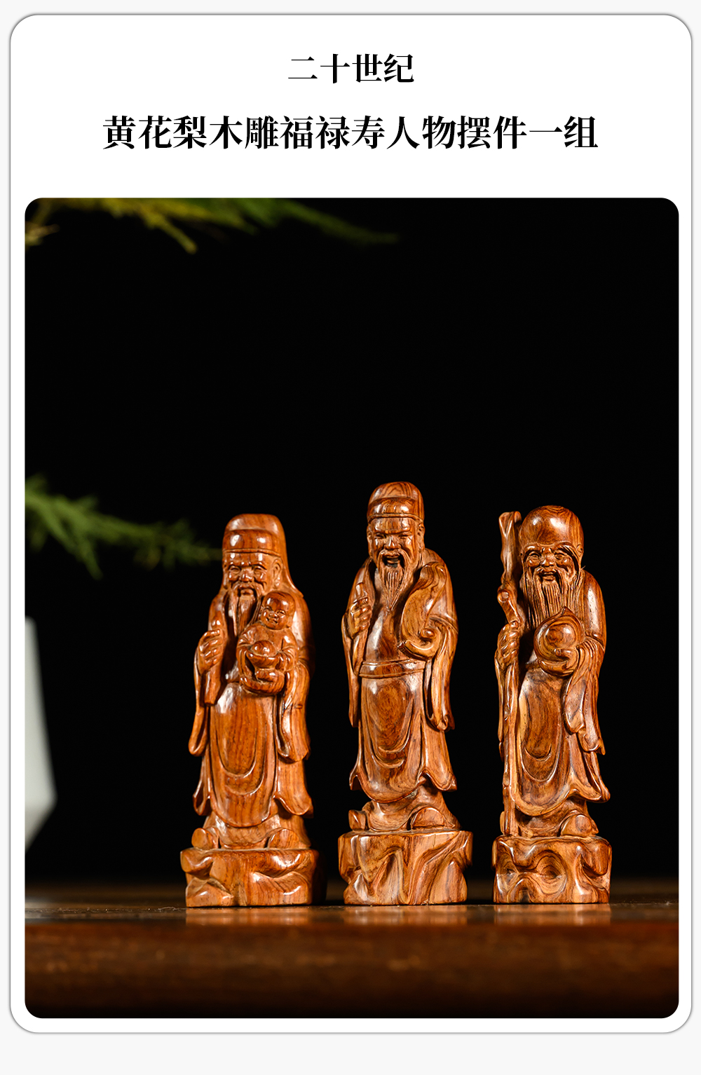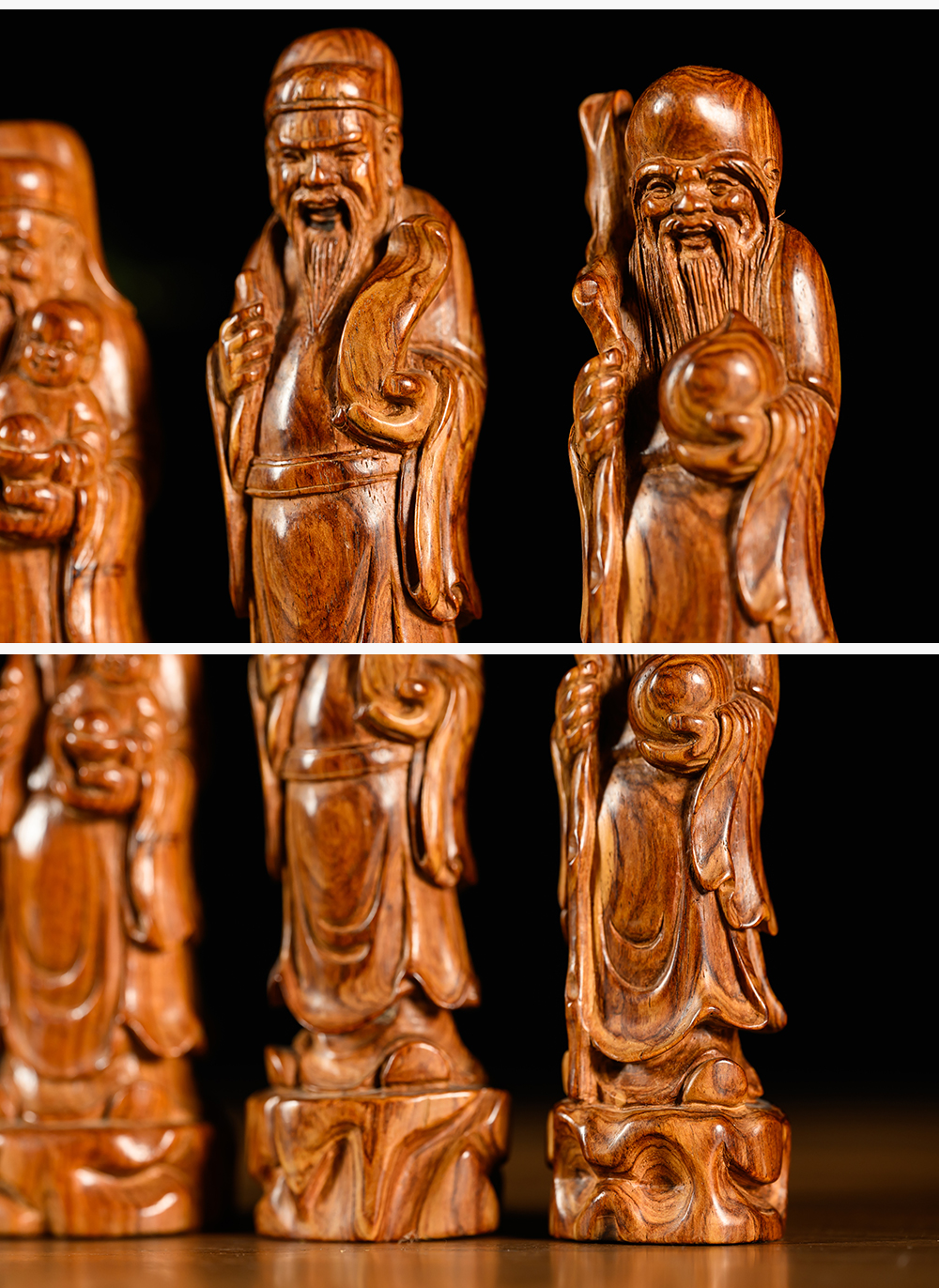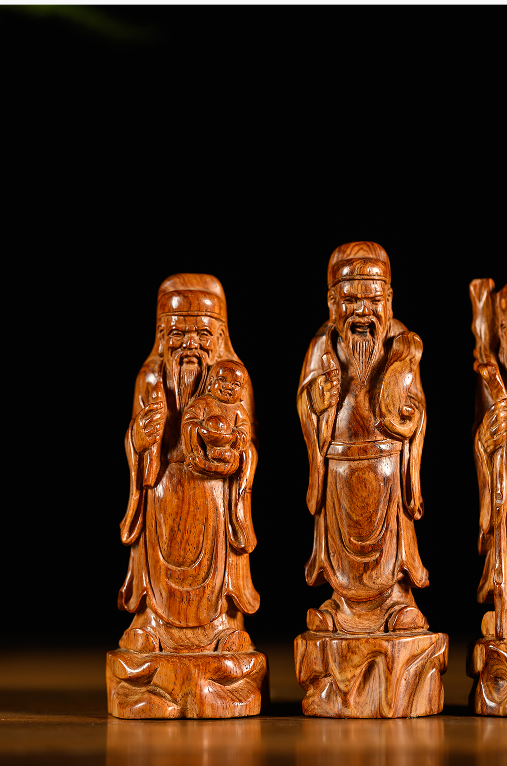 二十世纪 黄花梨木雕福禄寿人物摆件一组