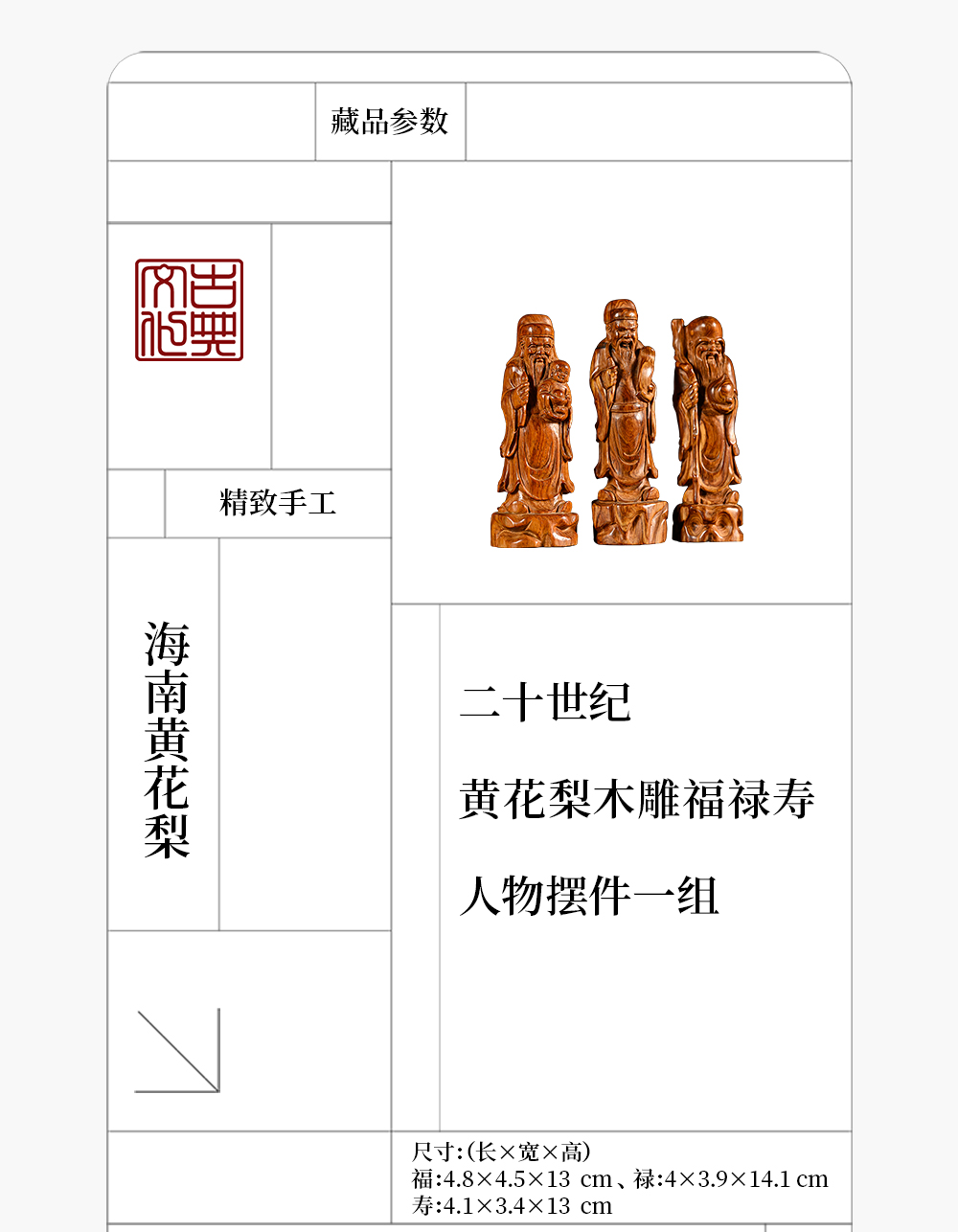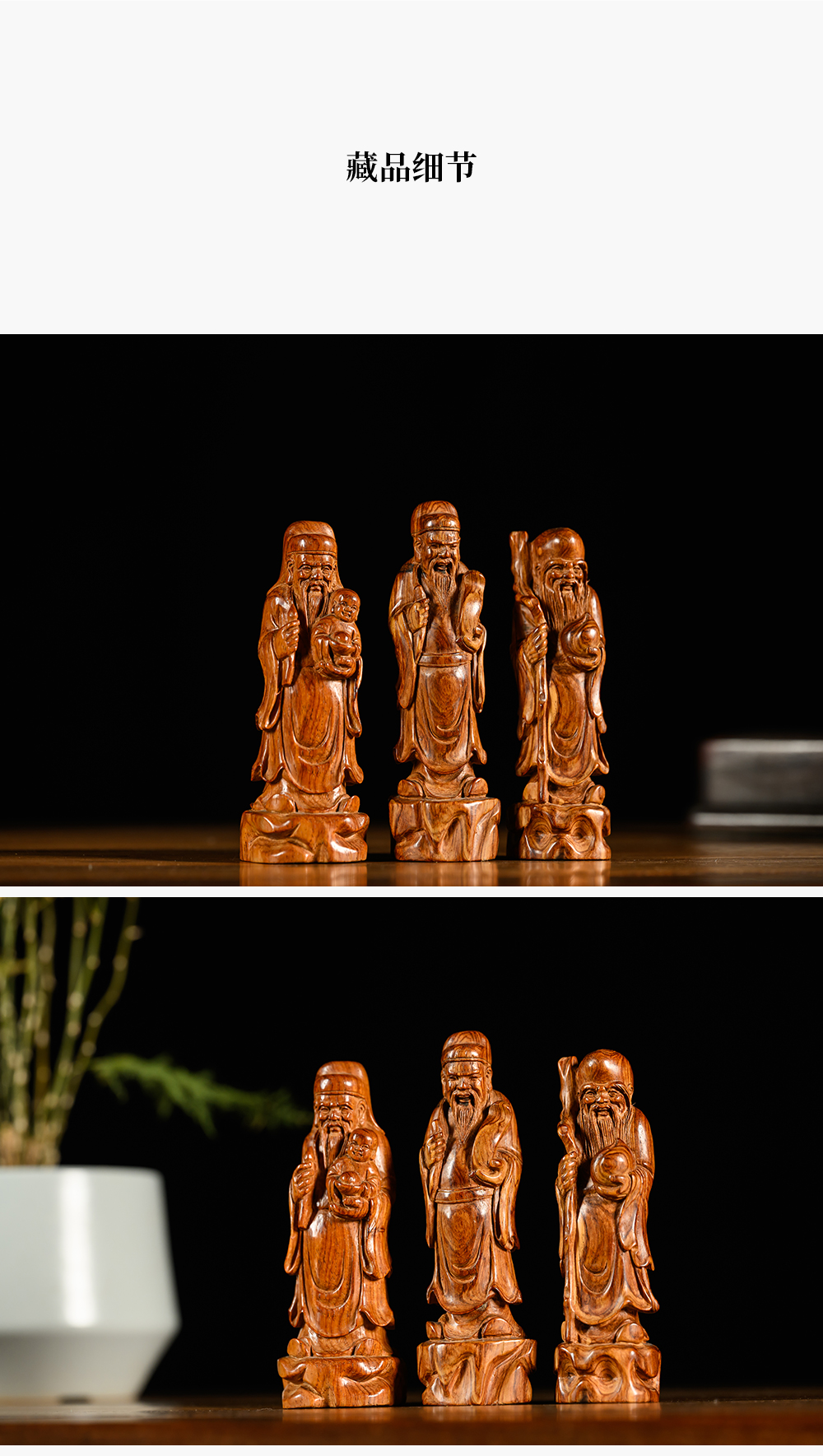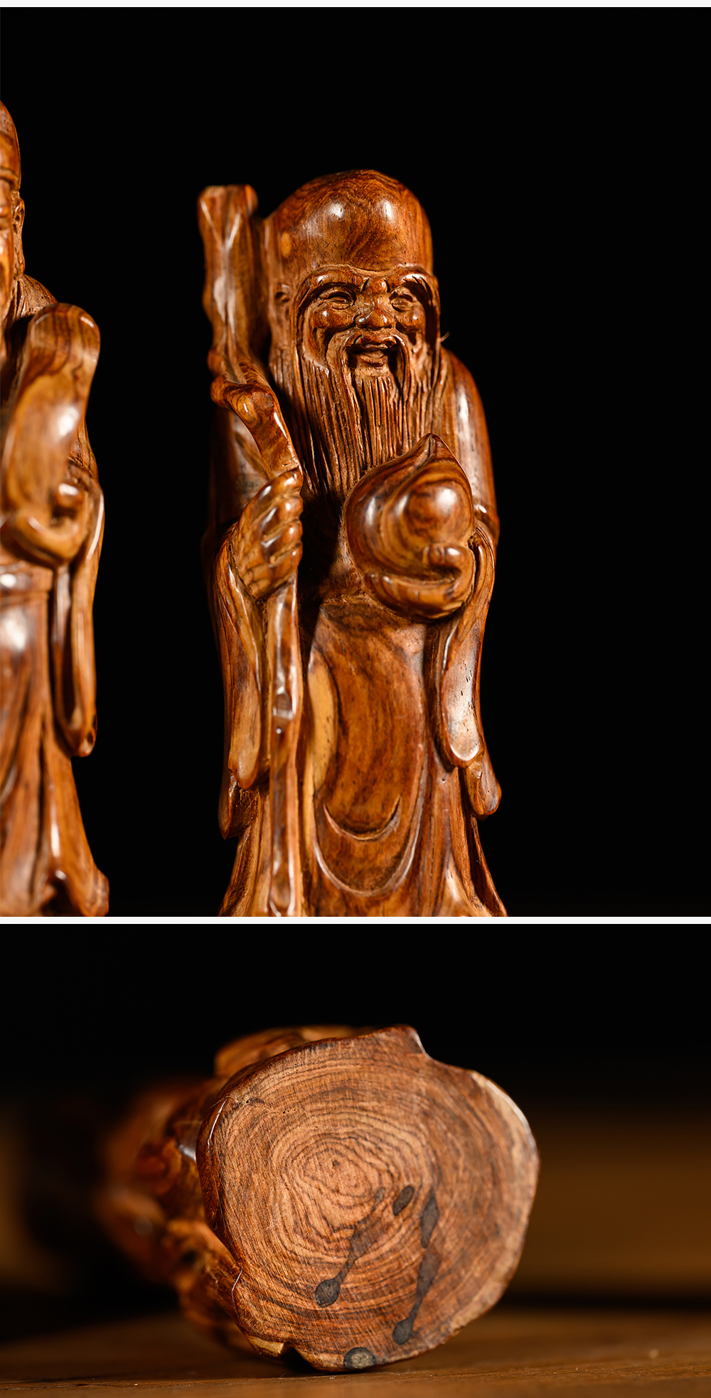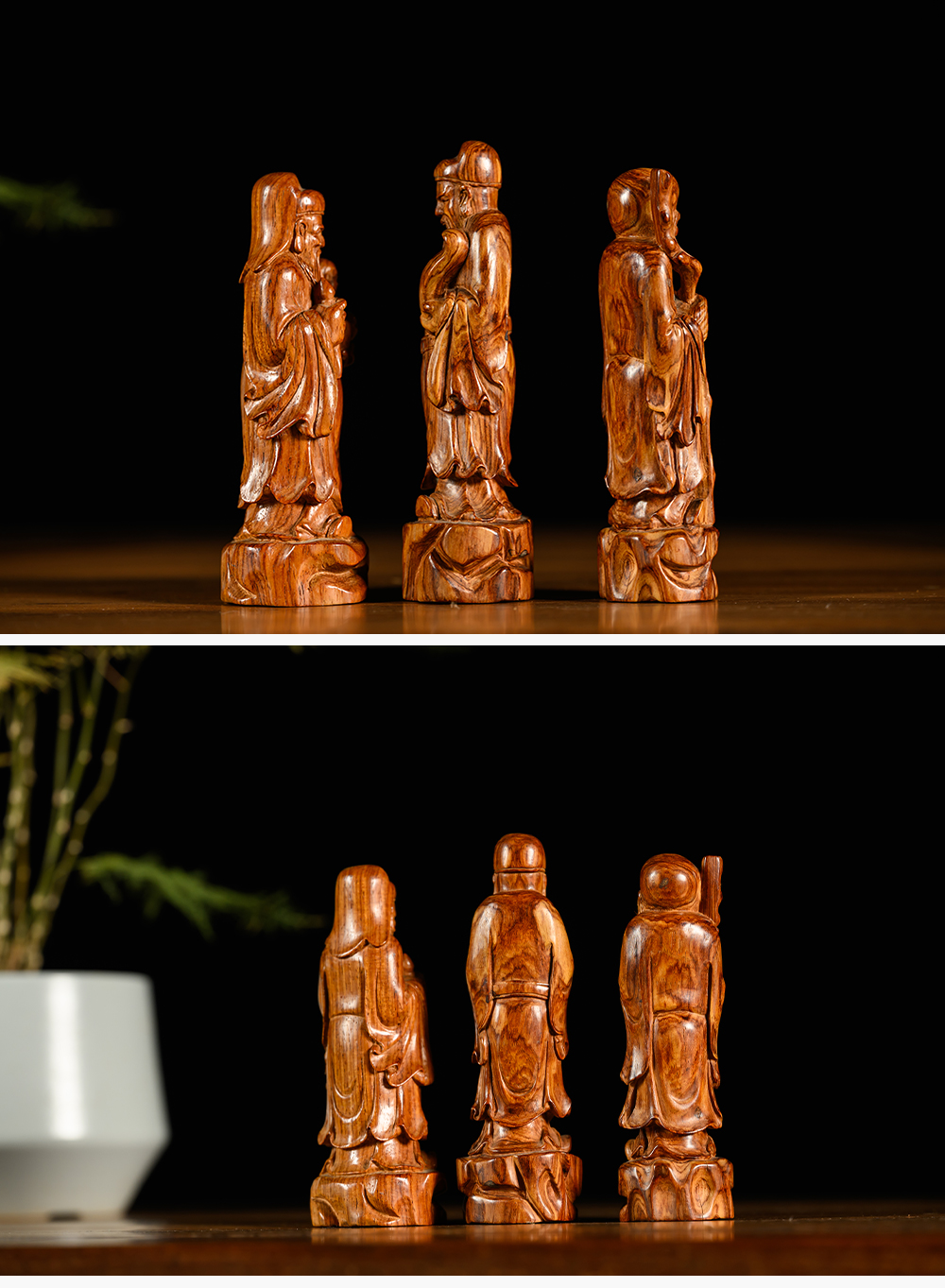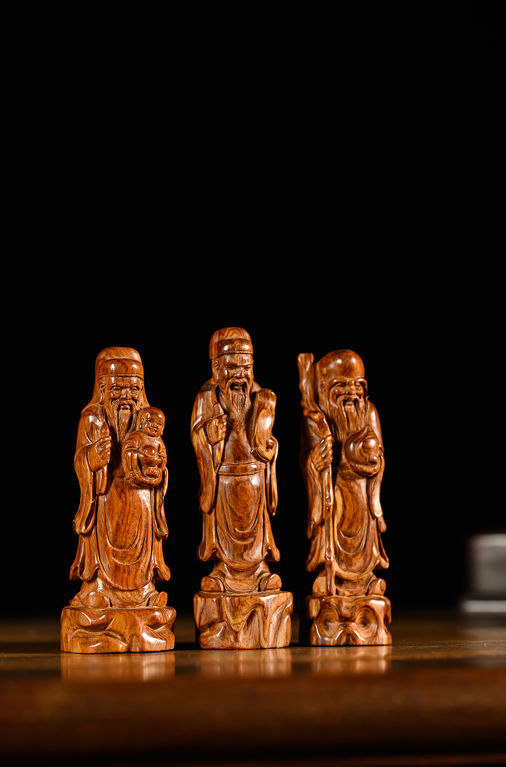 二十世纪 黄花梨木雕福禄寿人物摆件一组