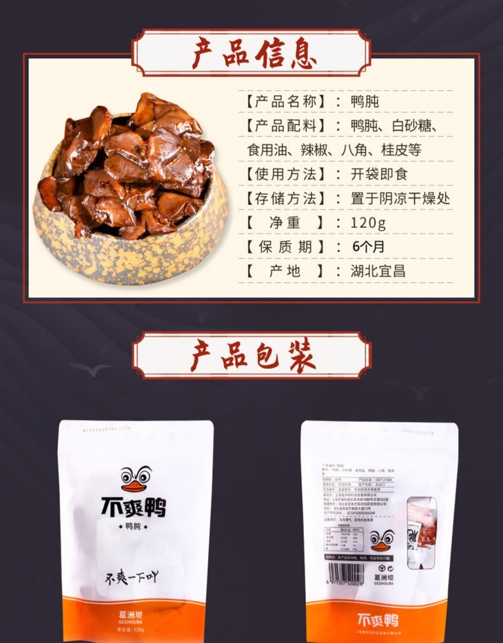 【葛洲坝】休闲卤制小零食 鸭肫 120g/袋 即食