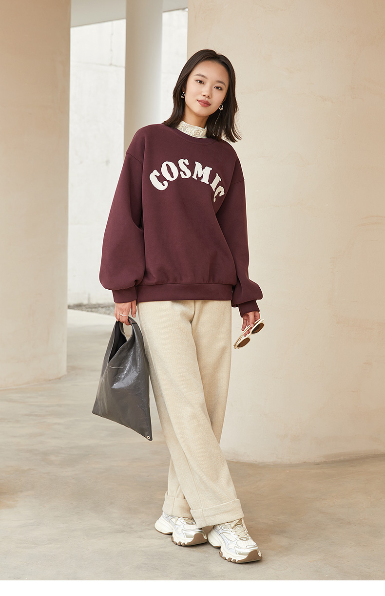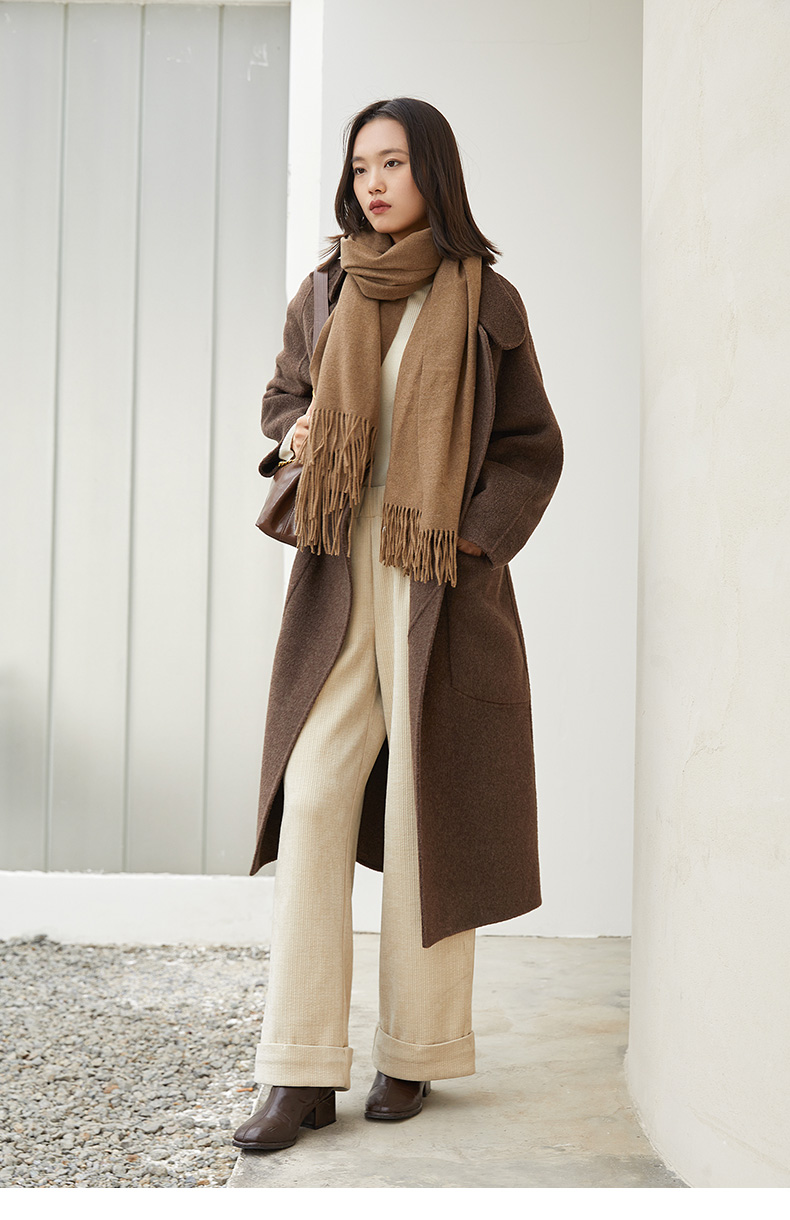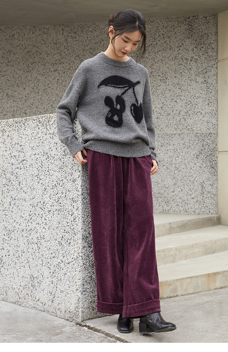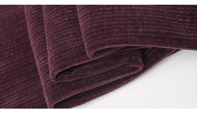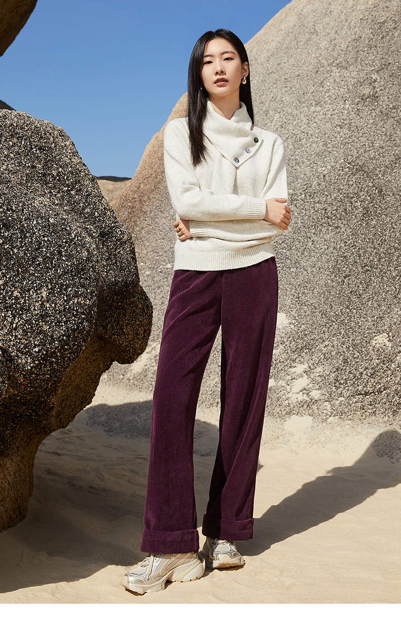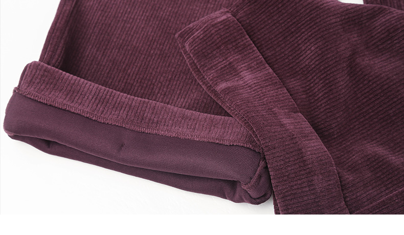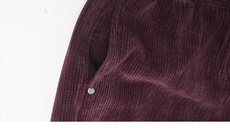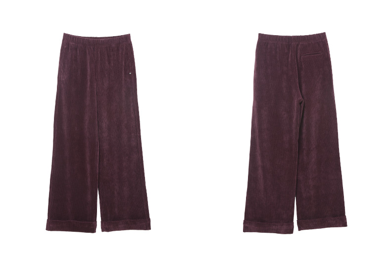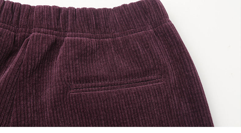 复古酒红色灯芯绒阔腿裤 高腰松紧腰显瘦长裤 秋冬垂感休闲卷边直筒裤