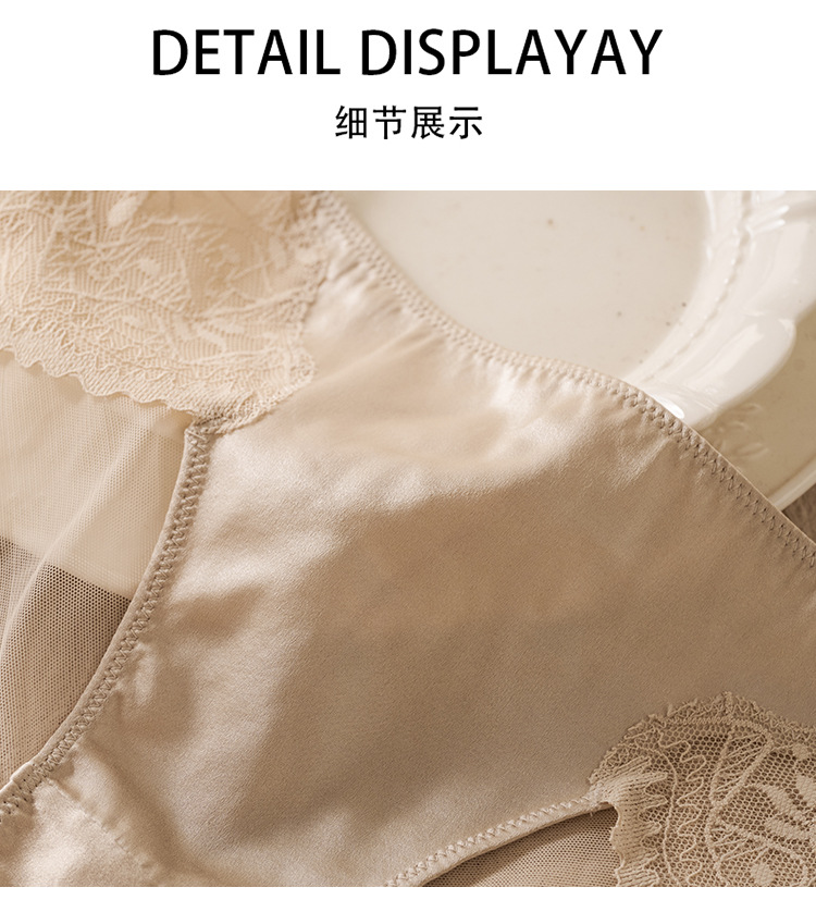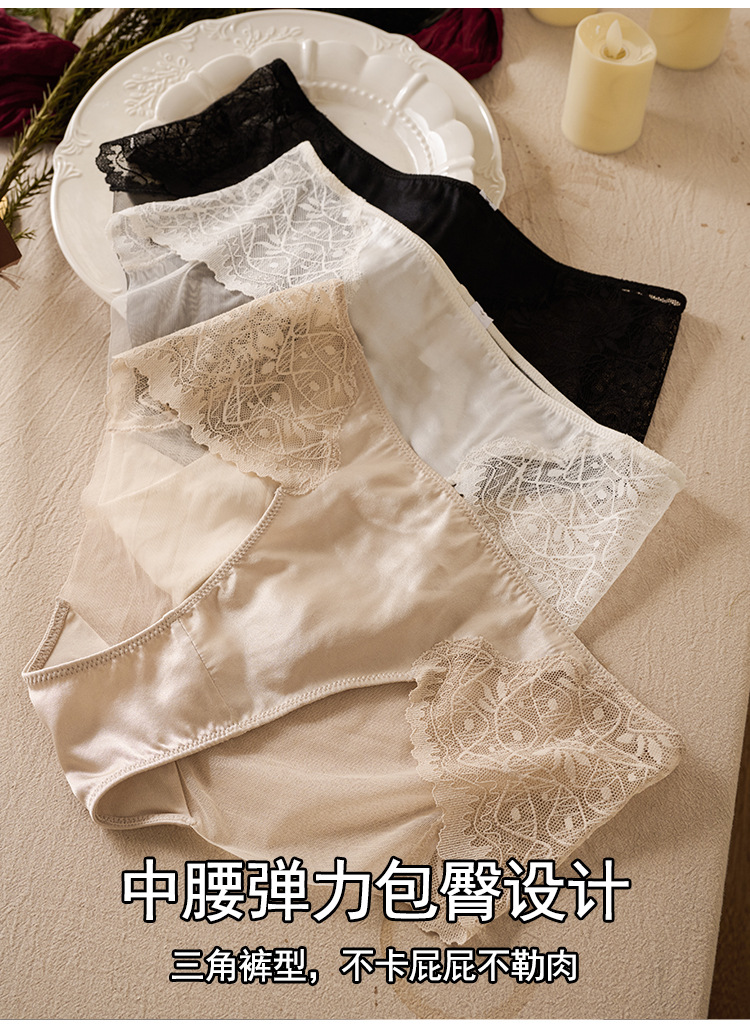 TG-TG01S170春夏真丝中腰女士内裤 桑蚕丝蕾丝性感花边透气包臀三角短裤