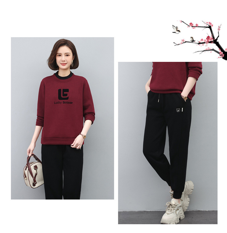 加绒运动套装时尚休闲,洋气减龄冬季加厚卫衣两件套HR-WJ22539
