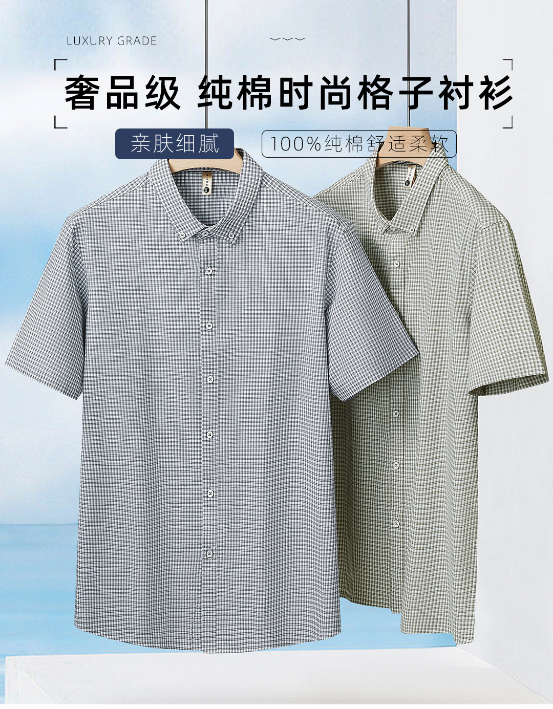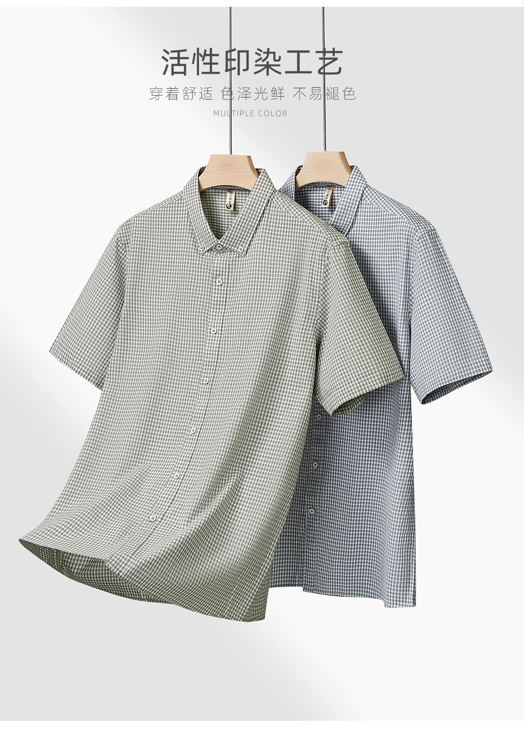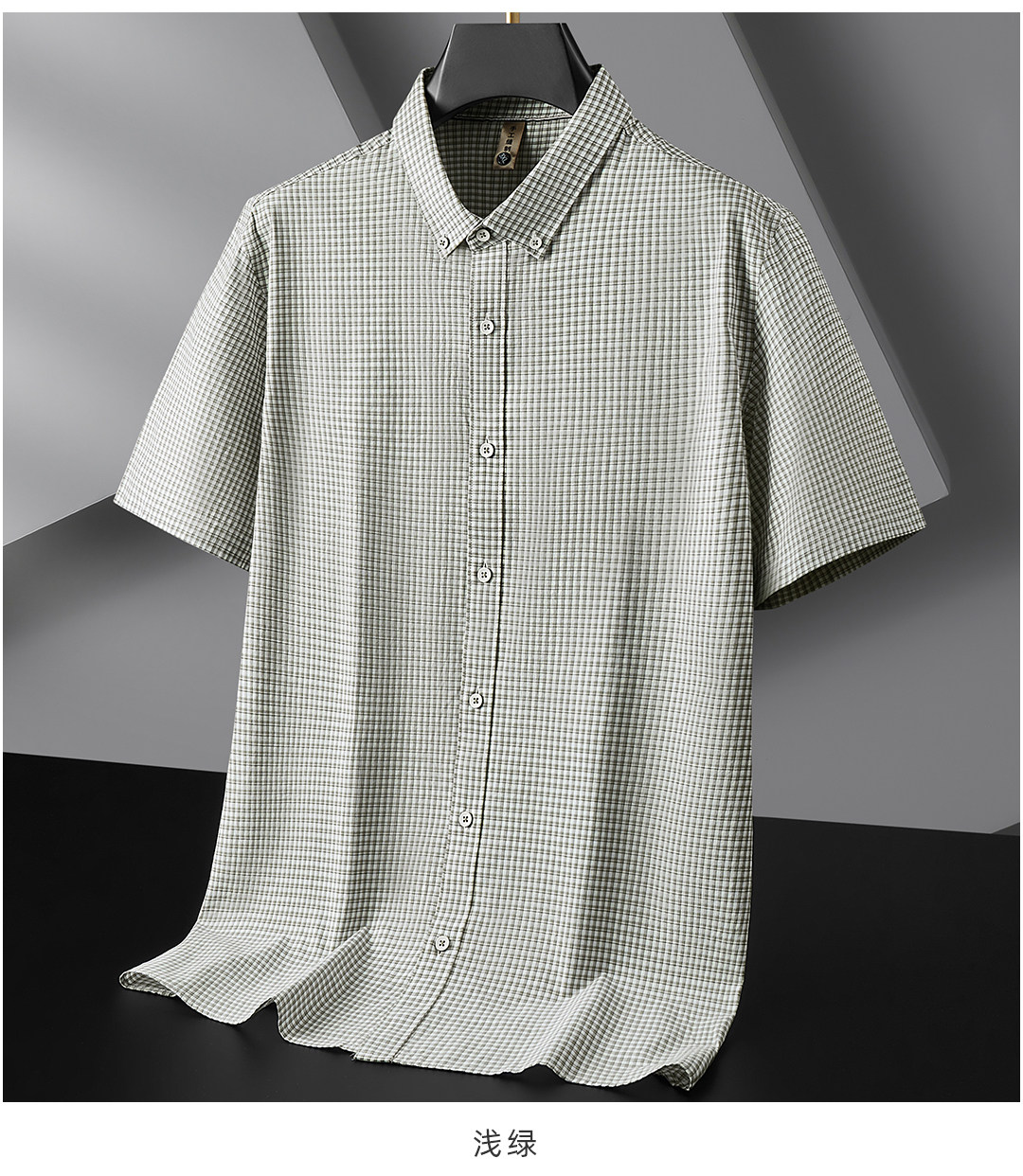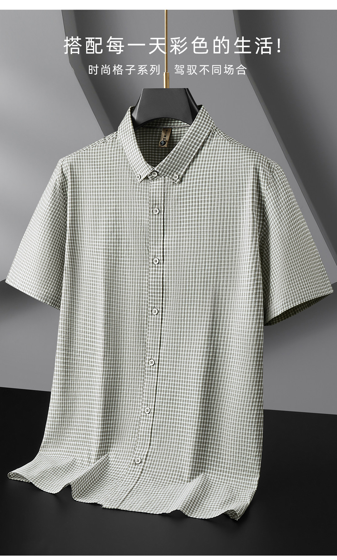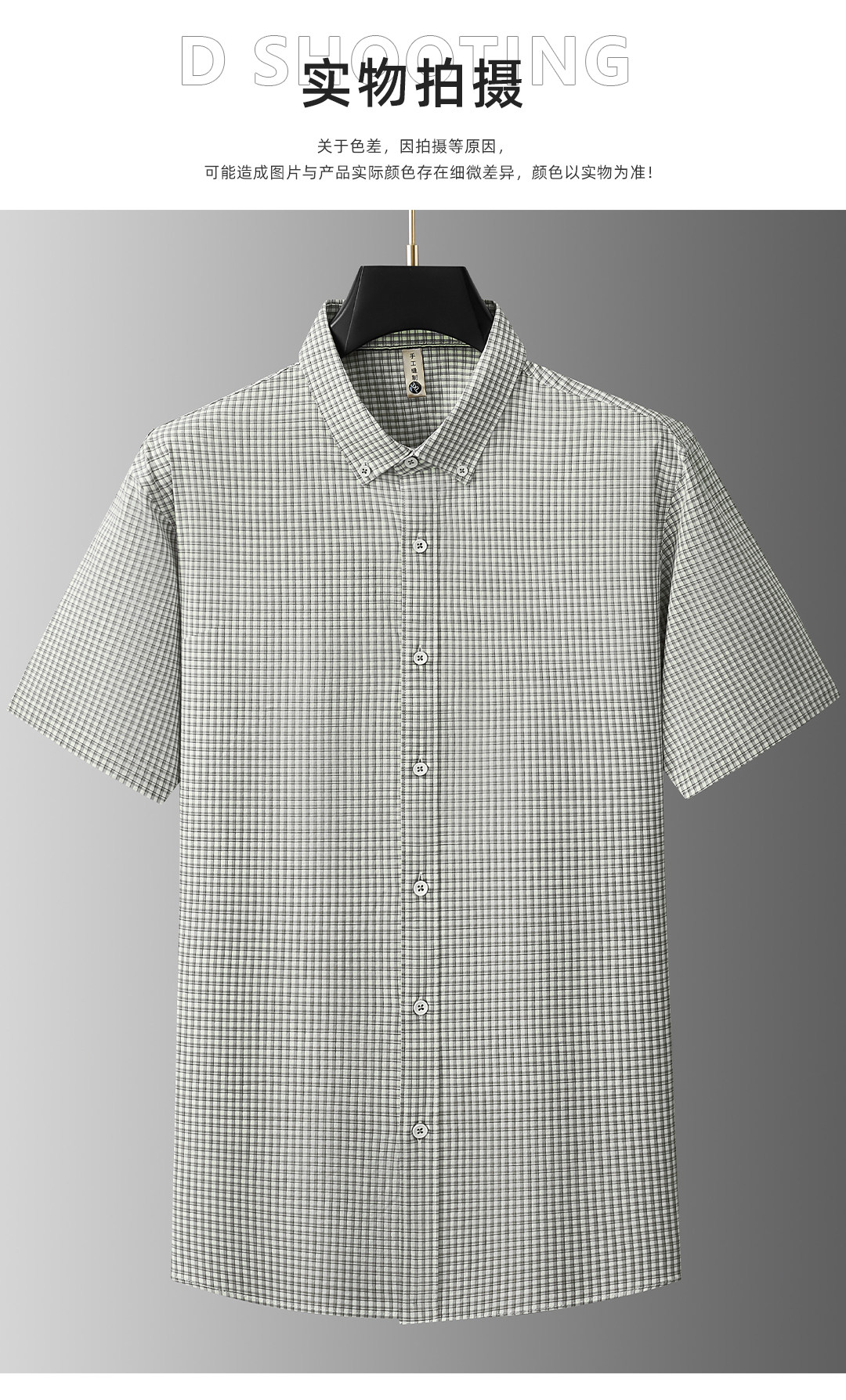 【DG】【纯棉】大依优型大码男装夏季纯色格子短袖衬衫商务休闲T恤300斤