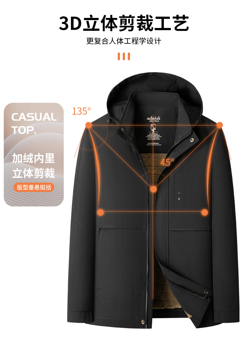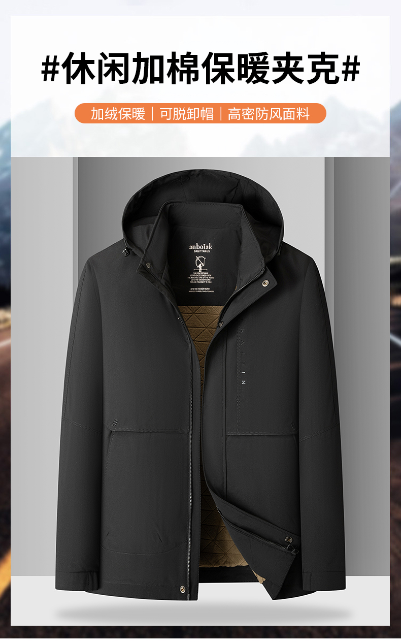 【可拆卸帽】【新款DKP】大依优型大码加绒棉衣连帽夹克棉服休闲胖子大码男休闲宽松加肥加大上衣冬季外套