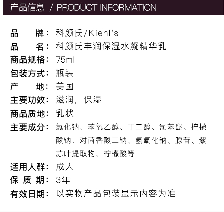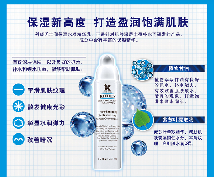 【精选乳液】美国科颜氏(Kiehl's)丰润保湿水凝精华乳75ml