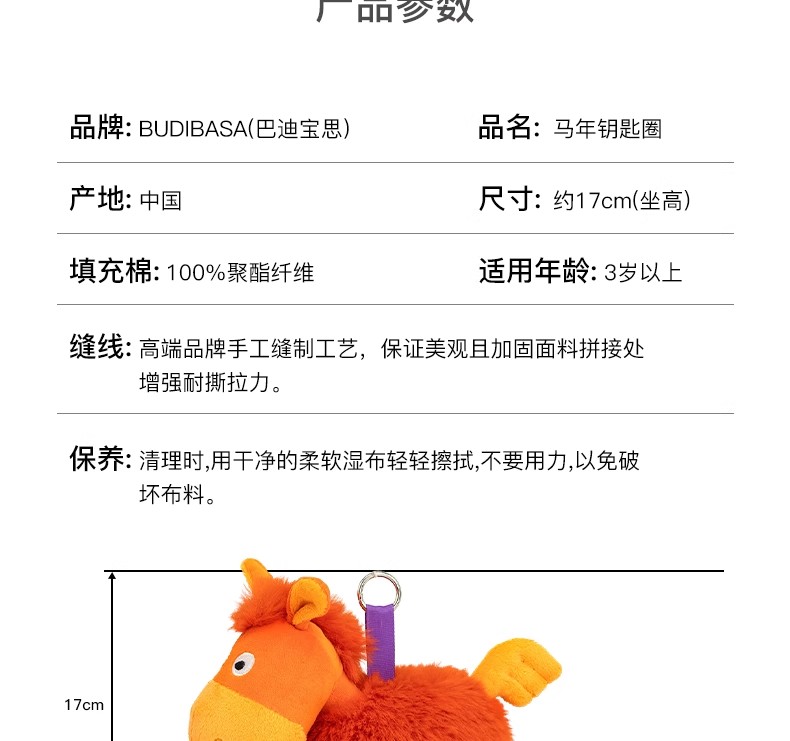 BUDIBASA巴迪宝思马年限定钥匙扣紫色小马-小本Ben