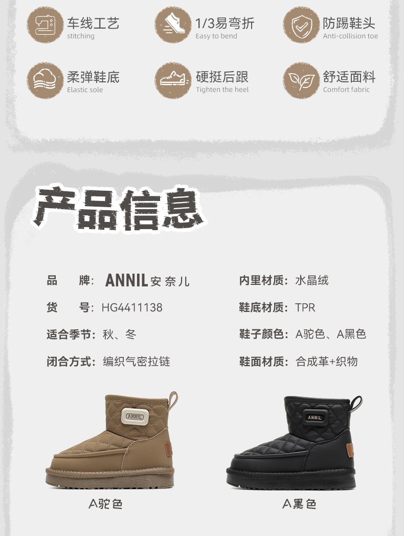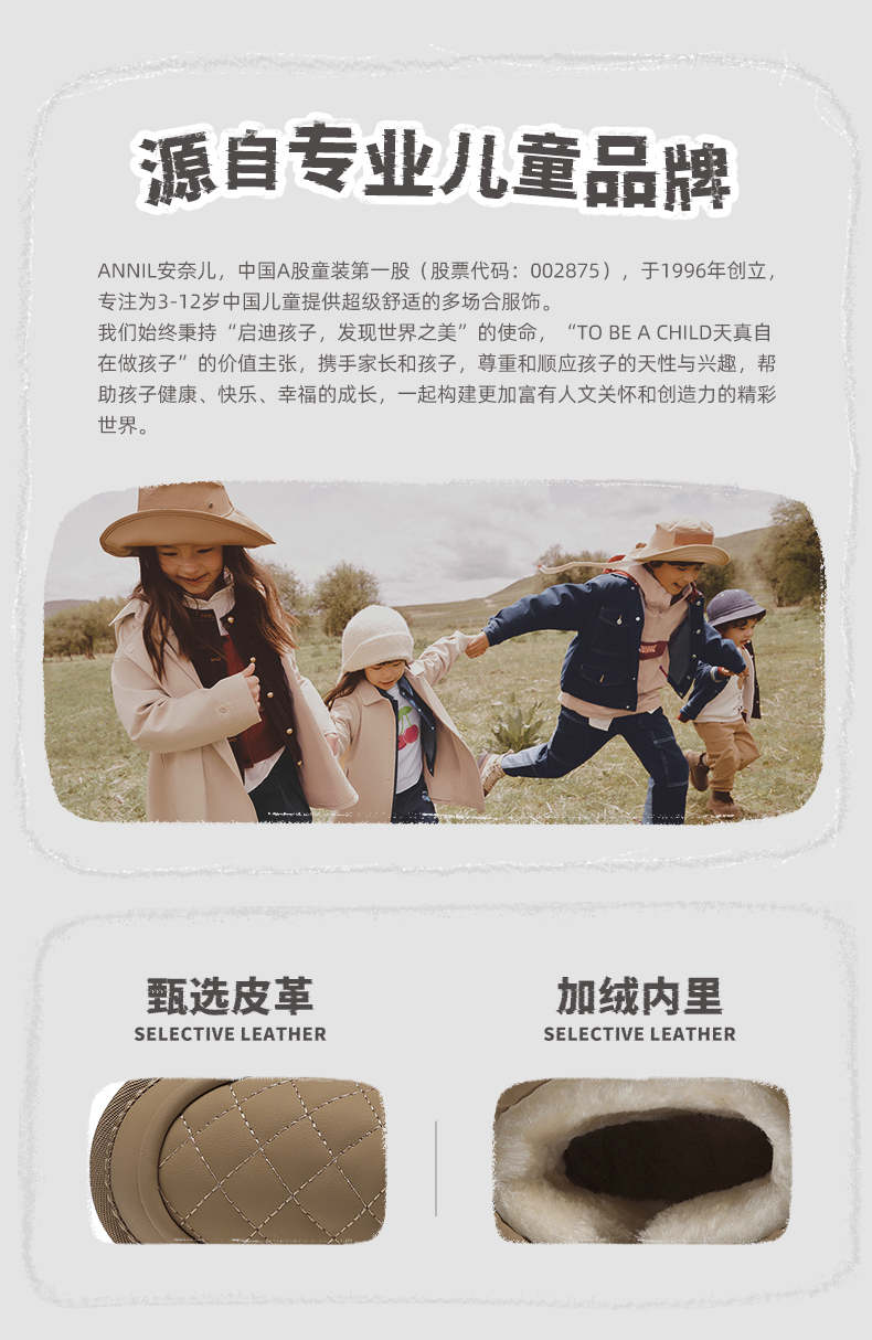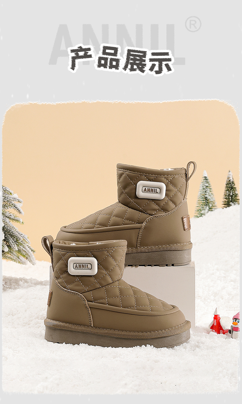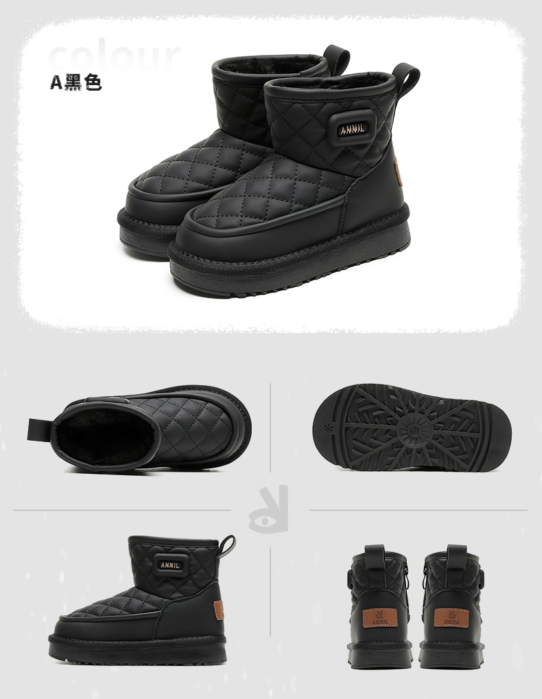 ANNIL/安奈儿儿童雪地靴女童棉靴加绒保暖防水皮靴2024年冬季新款HG4411138