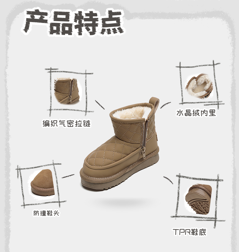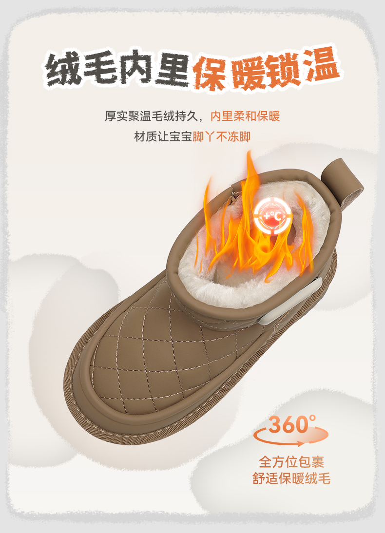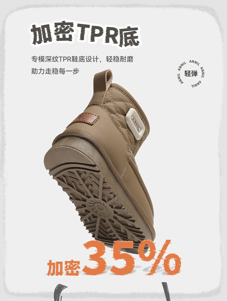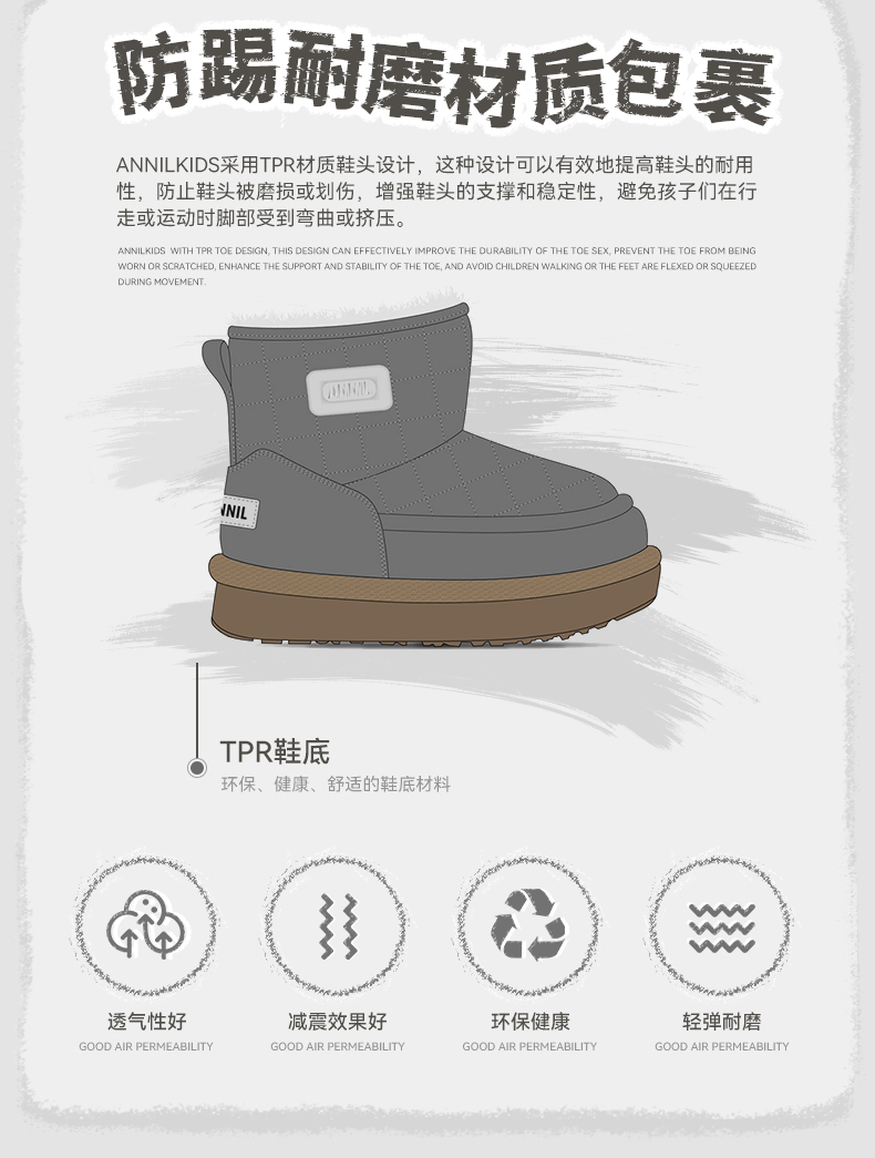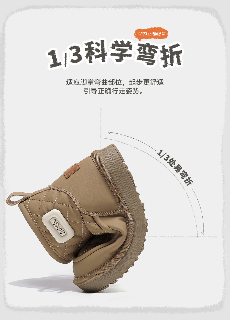 ANNIL/安奈儿儿童雪地靴女童棉靴加绒保暖防水皮靴2024年冬季新款HG4411138