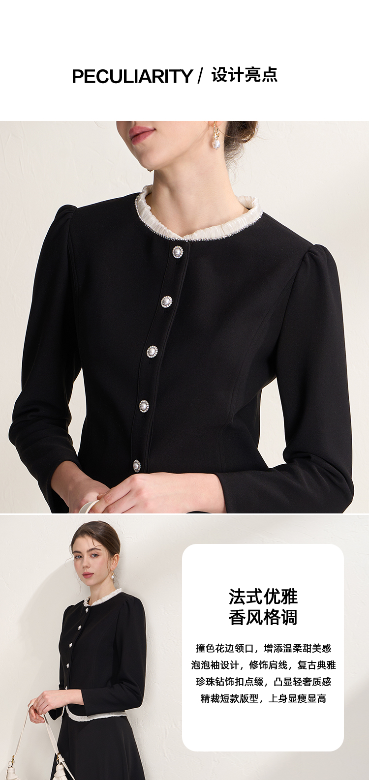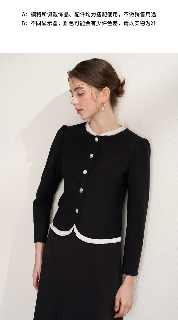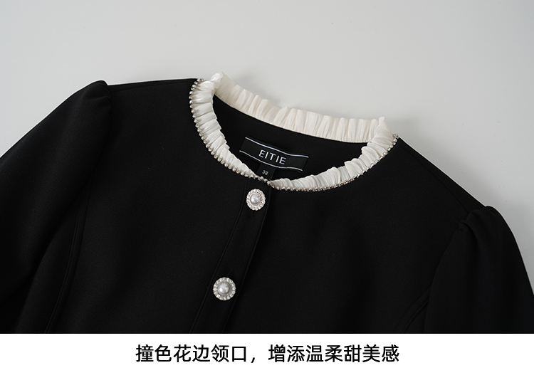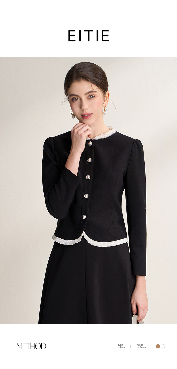 EITIE爱特爱撞色花边领短款修身珍珠扣优雅小香风外套A2603111