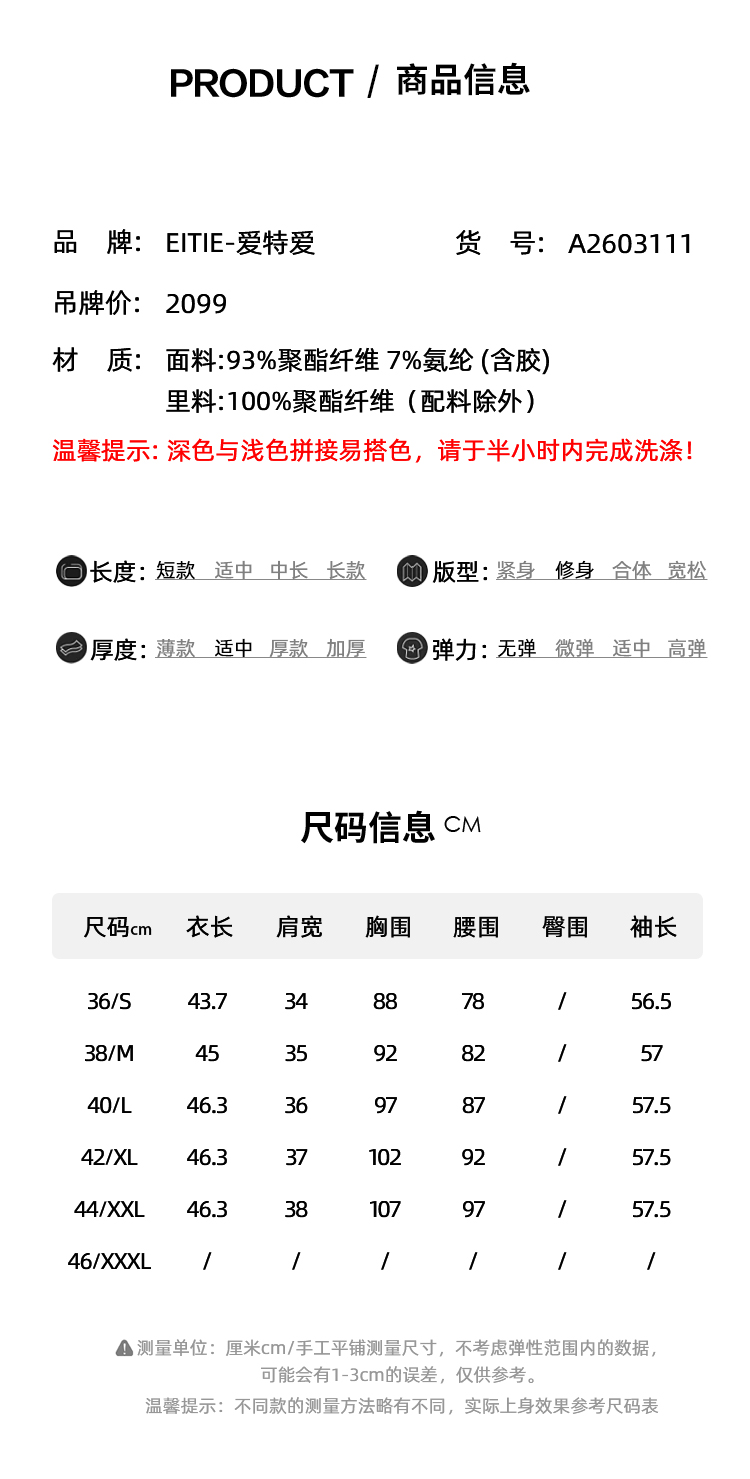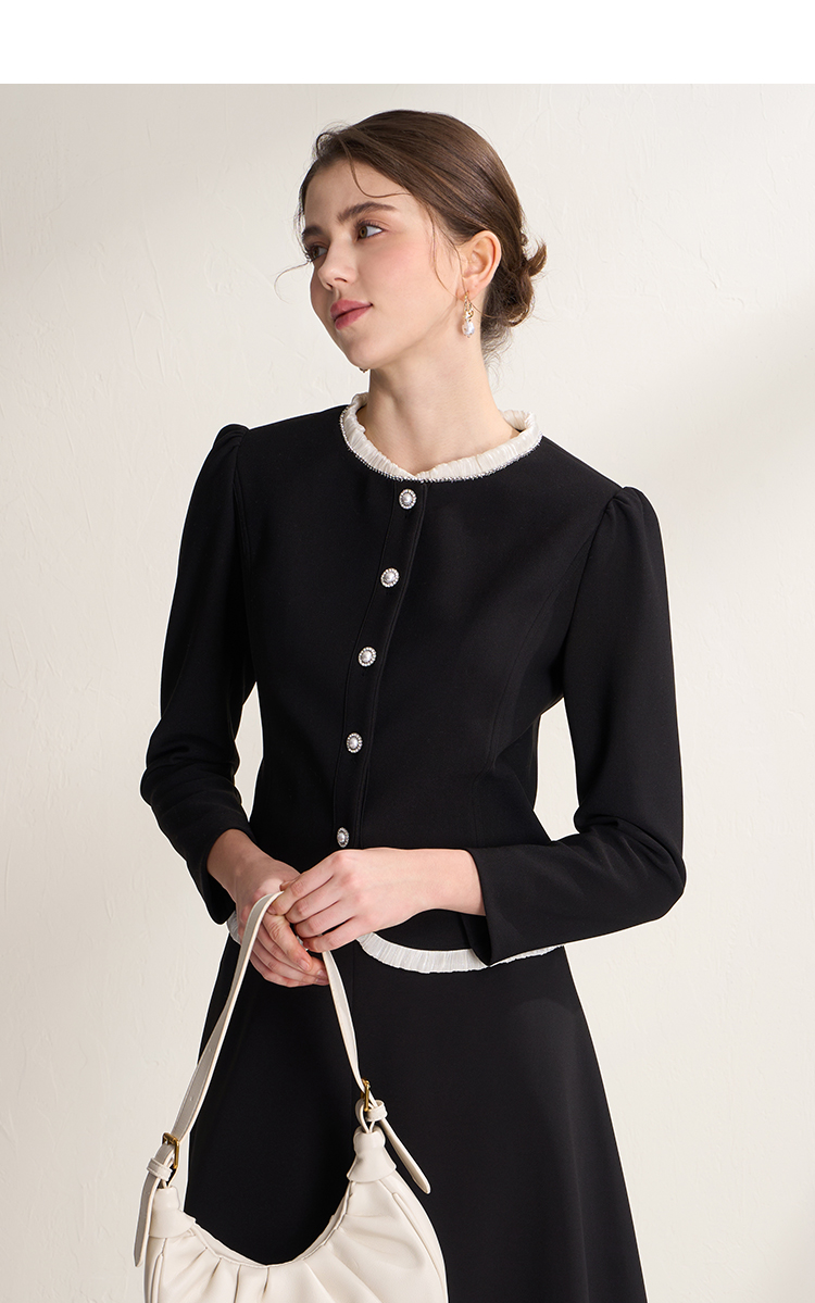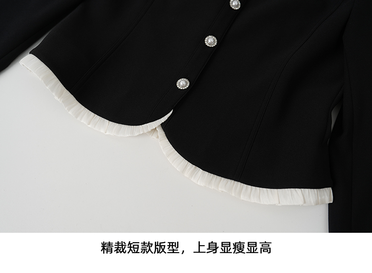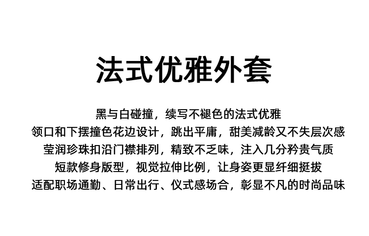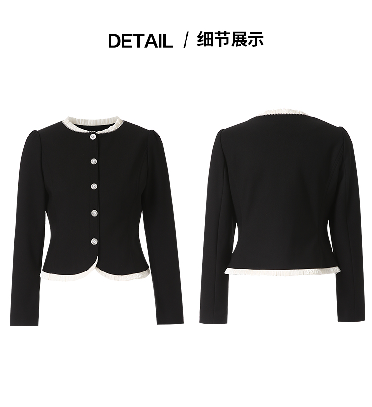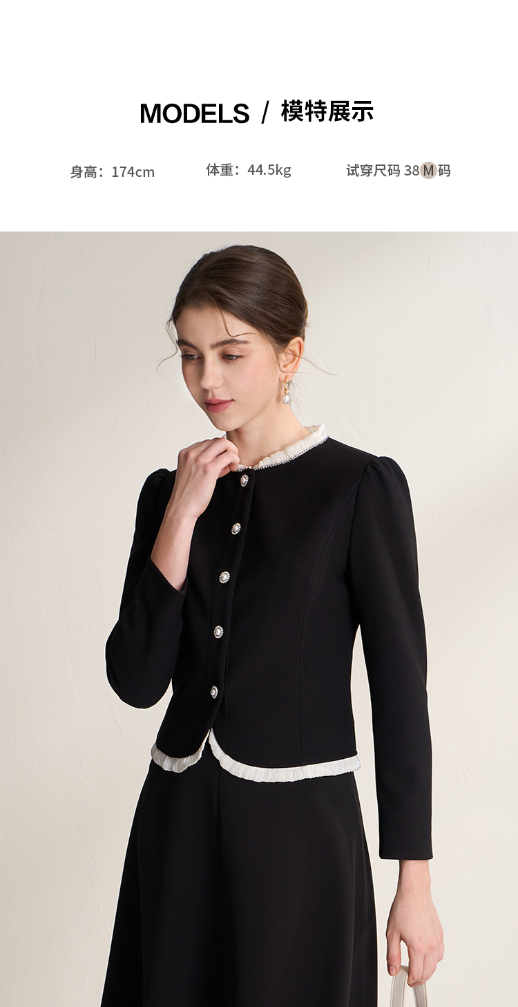 EITIE爱特爱撞色花边领短款修身珍珠扣优雅小香风外套A2603111
